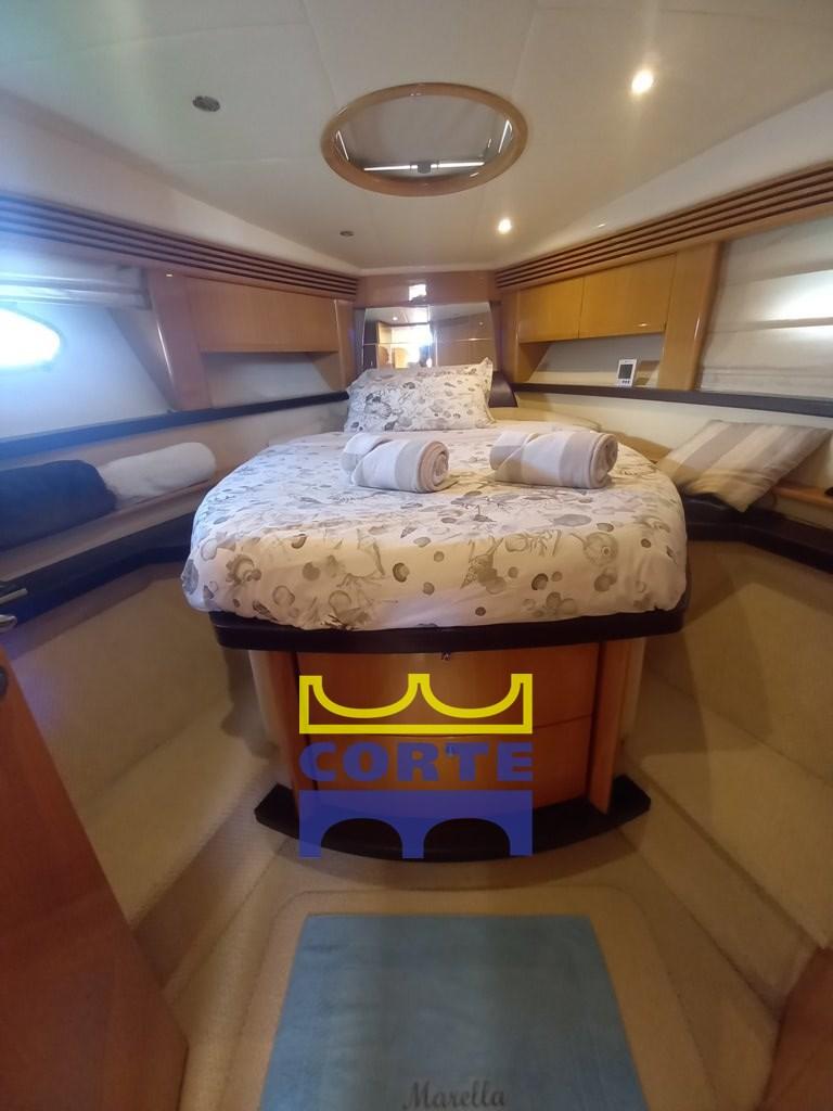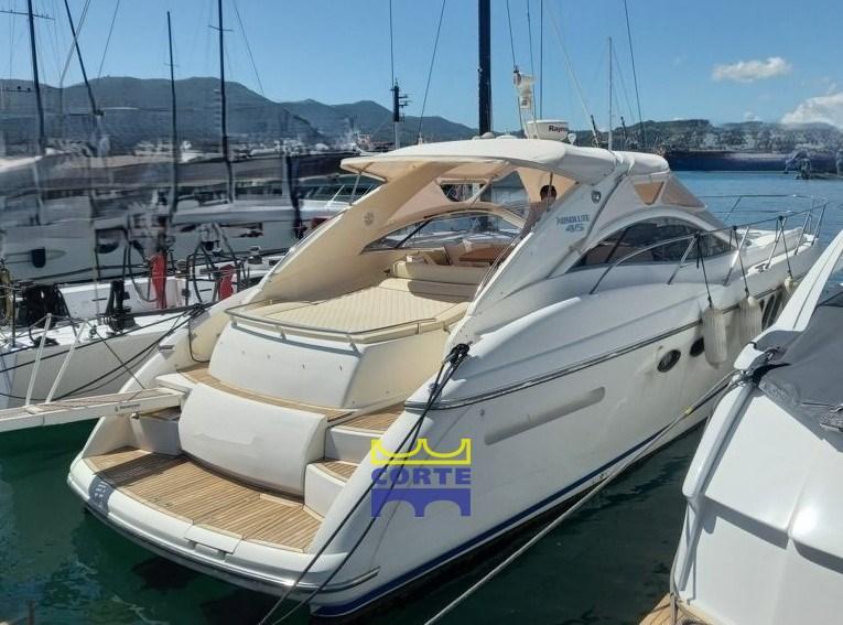 Coque blanche, garage annexe, 2 cabines doubles, bain de soleil arrière et avant.
