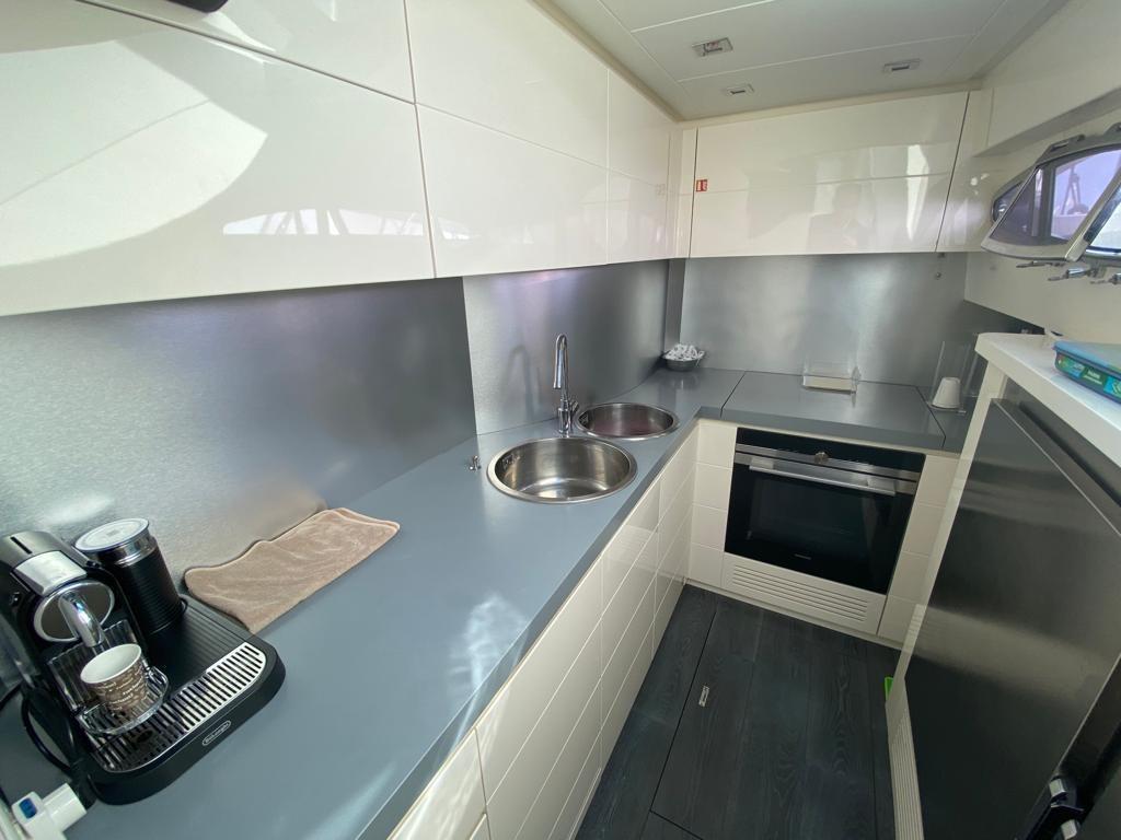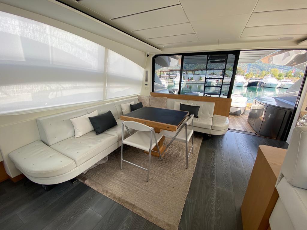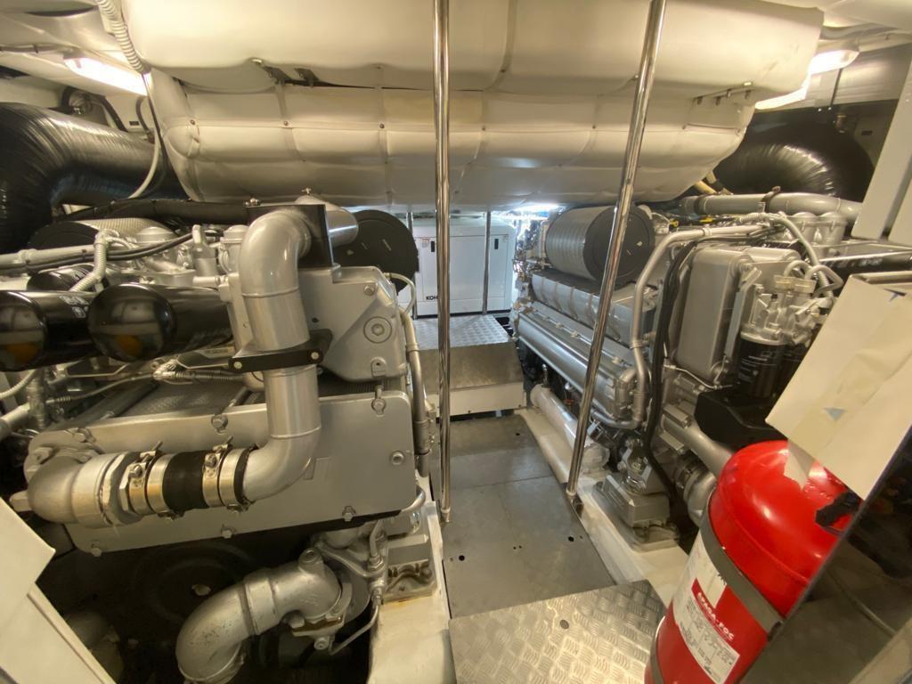 Alarme moteur, Alarme de pompe de cale, Alternateur, Eau sous pression, 8 Batteries, Passavant en teck, Douche de cockpit, Flaps hydrauliques, Garage à annexe, Extincteur(s) fixe(s), Indicateurs de flaps, Éclairage de courtoisie, Spots sous-marins, Défenses, Passerelle, Plateforme arrière, Pompe de cale automatique, Pompe de cale manuelle, Pont en teck, Porte latérale, Cockpit en teck, Prise de quai, Connexion eau sous pression à quai, Guindeau Hydraulique, Echelle de bain, 2 Stabilisateurs (SEAKEEPER), Annexe, Corne, Winch électrique arrière, Winch électrique avant.