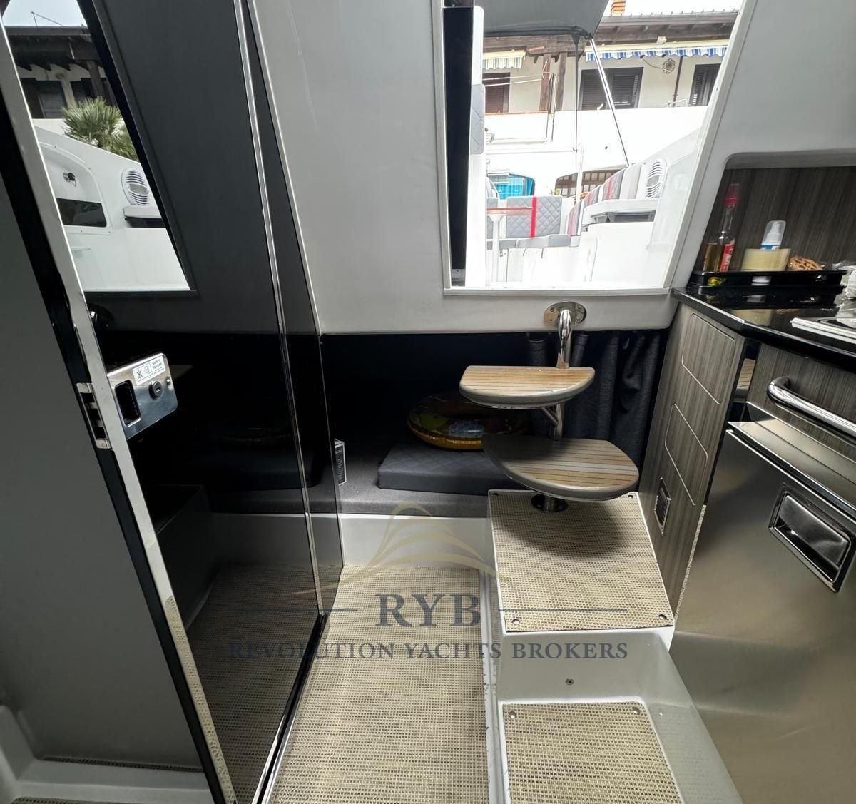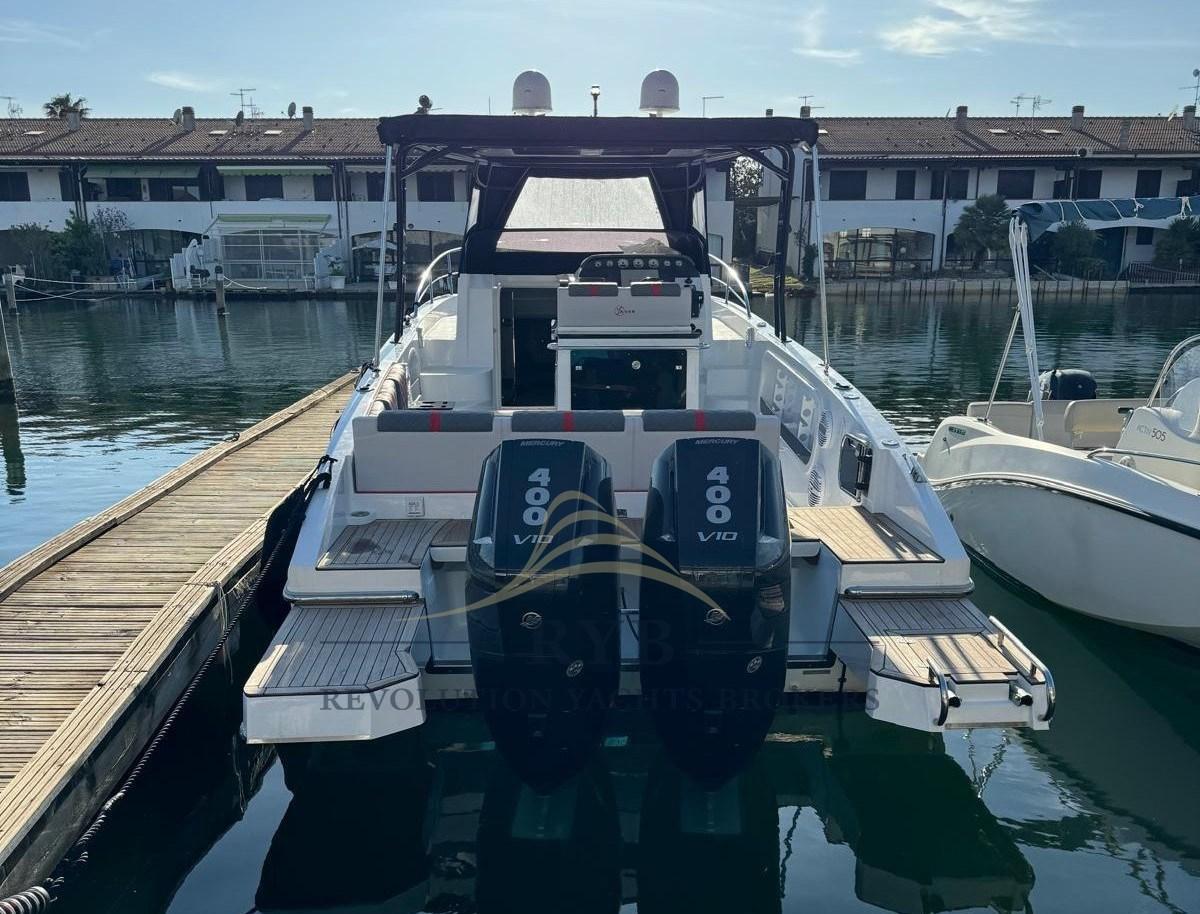 Phare de poursuite, Flaps électriques, Lavabo dans le cockpit, Éclairage de courtoisie, Spots sous-marins, Panneau solaire, Plateforme arrière, Prise de quai, Echelle de bain, table de cockpit, T-Top.