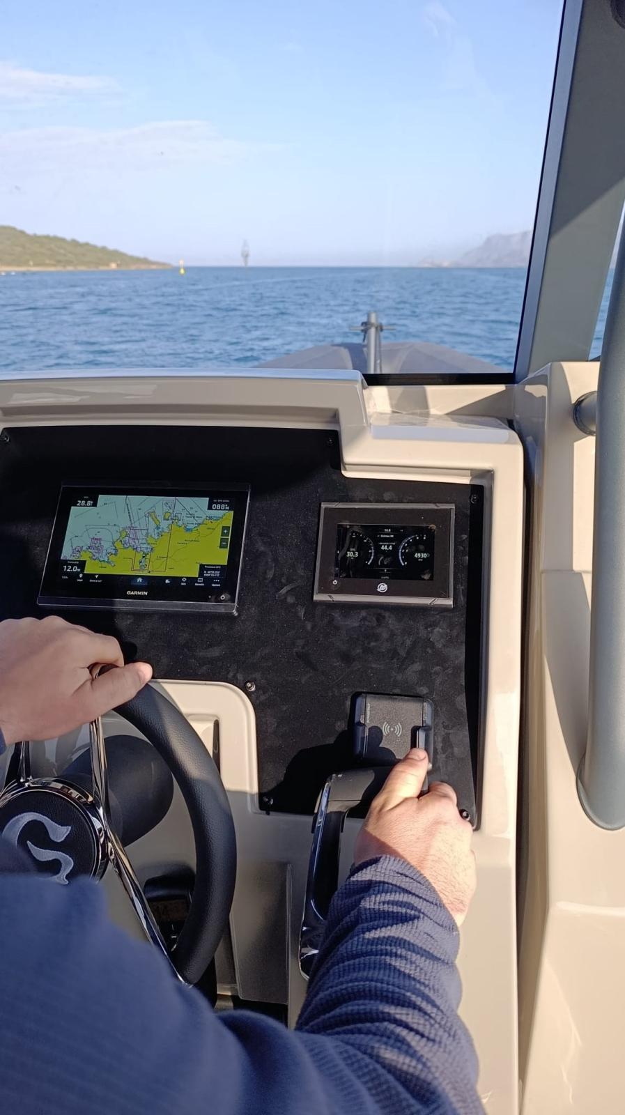 Le bateau est configuré presque entièrement en option et offre tout ce dont vous avez besoin pour passer une agréable journée en mer. Parmi les équipements, on trouve le guindlard électrique, le réfrigérateur intégré dans le cockpit et les bandes antidérapantes sur les tubes, conçus pour accroître la sécurité et éviter les glissades lors de l’embarquement ou des déplacements à bord.