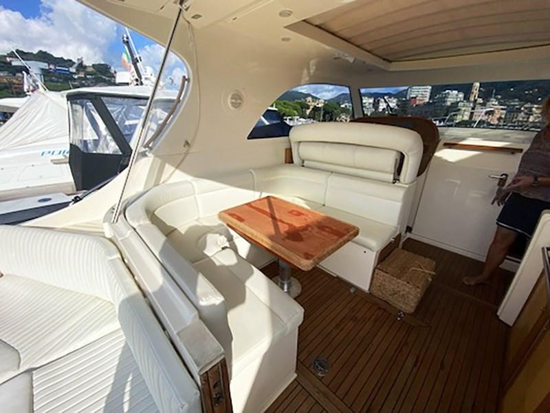 Alarme moteur, Alarme de pompe de cale, Alternateur, Eau sous pression, Passavant en teck, Câble d’alimentation à quai, Filière, Douche de cockpit, Phare de poursuite, Flaps électriques, Garage à annexe, Hard top, Extincteur(s) fixe(s), Éclairage de courtoisie, Spots sous-marins, Défenses, Passerelle, Plateforme arrière, Pompe de cale automatique, Pont en teck, Porte latérale, Cockpit en teck, Prise de quai, Guindeau électrique, Echelle de bain, table de cockpit, Annexe, Corne, Winch électrique arrière.