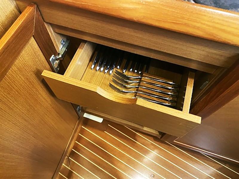 Feux de navigation ; Feu d’ancre ; Lumières de courtoisie ; Lumières sous-marines ; Profondeur des phares ; Watermaker ; Nouveau tender ; passerelle hydraulique ; prise de rivage 220V ; Auvent de fermeture du cockpit ; Table de cockpit ; Pont ouvrier avant ; Un guindeau électrique ; Treuil d’amarrage à l’avant et à la poupe ; Cockpit et passerelles en teck ; Toit souple ouvrible ; Propulseur d’arc ; Pompes de cale automatiques ; Souffleurs ; 2 réfrigérateurs ; Congélateur ; Autoclave ; Chargeur de batterie ; Batteries moteur ; Entretien des batteries ; Déconnexion de batterie ; climatisation/chauffage ; Micro-ondes ; Cuisinière électrique à deux feux ; Bornes d’amarrage ; Des ailes ; Demi-marin ; Essuie-glaces ; Trompette ; passerelle arrière en teck ; Échelle de nage ; Douche dans le cockpit ; Mât de drapeau ; Enceintes du cockpit ; Extincteurs ; Onduleur ; Alarme moteur ; Alarme de cale ; Encore une fois ; Battre des rabats ; Générateur (16h50)