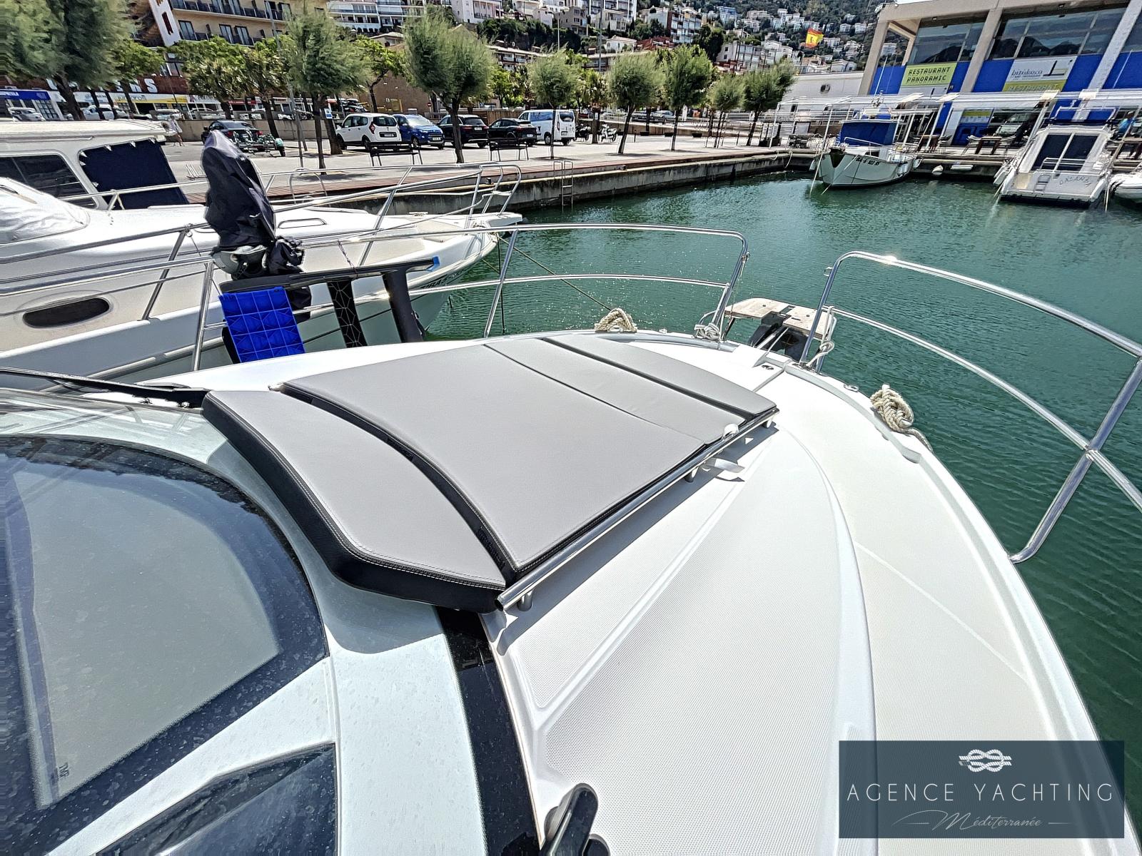 Le bateau dispose d’un propulseur d’étrave facilitant les manœuvres au port, ainsi que d’un équipement de navigation complet comprenant GPS traceur et VHF. Le taud de camping permet de fermer entièrement le cockpit et d’augmenter considérablement l’espace de vie à bord.