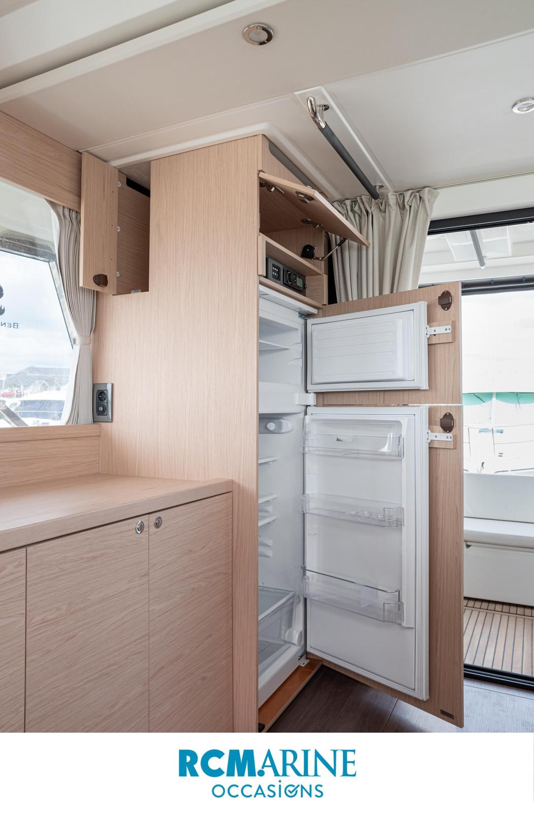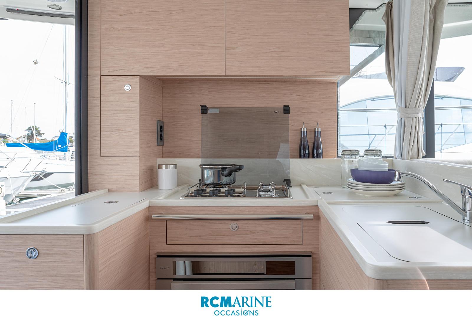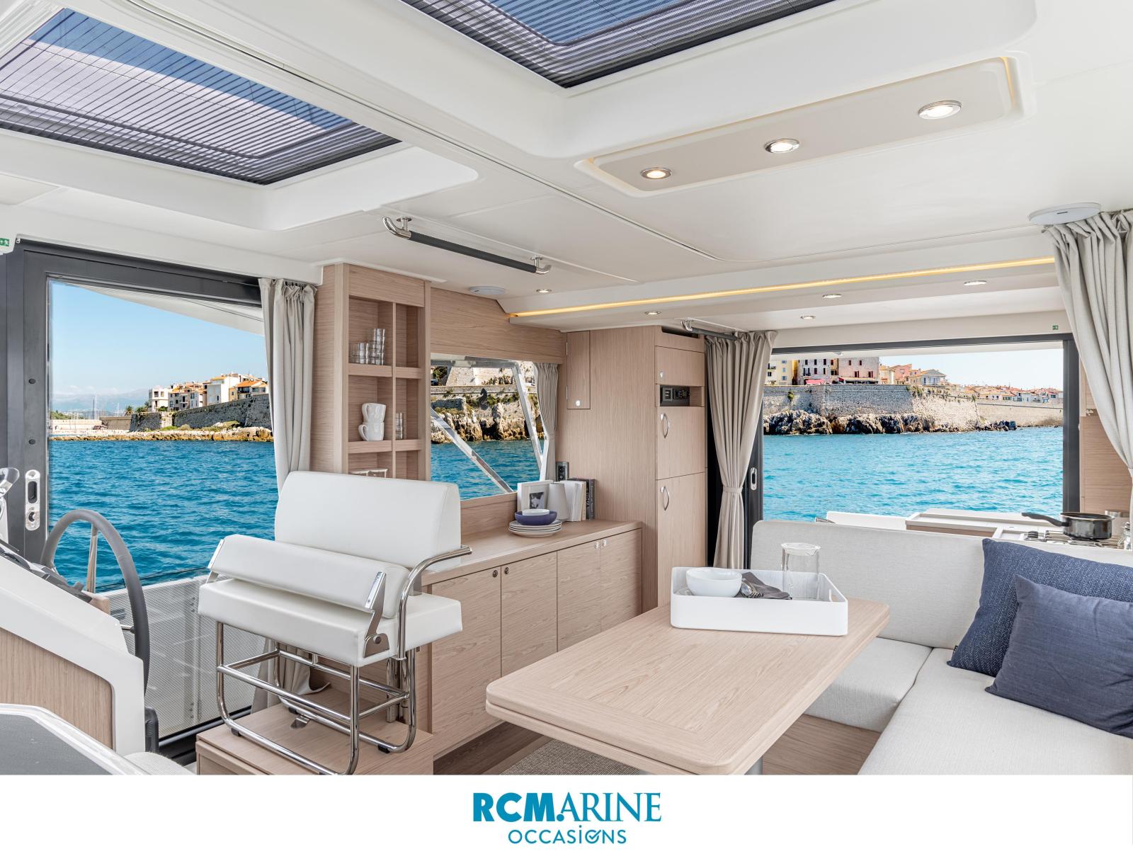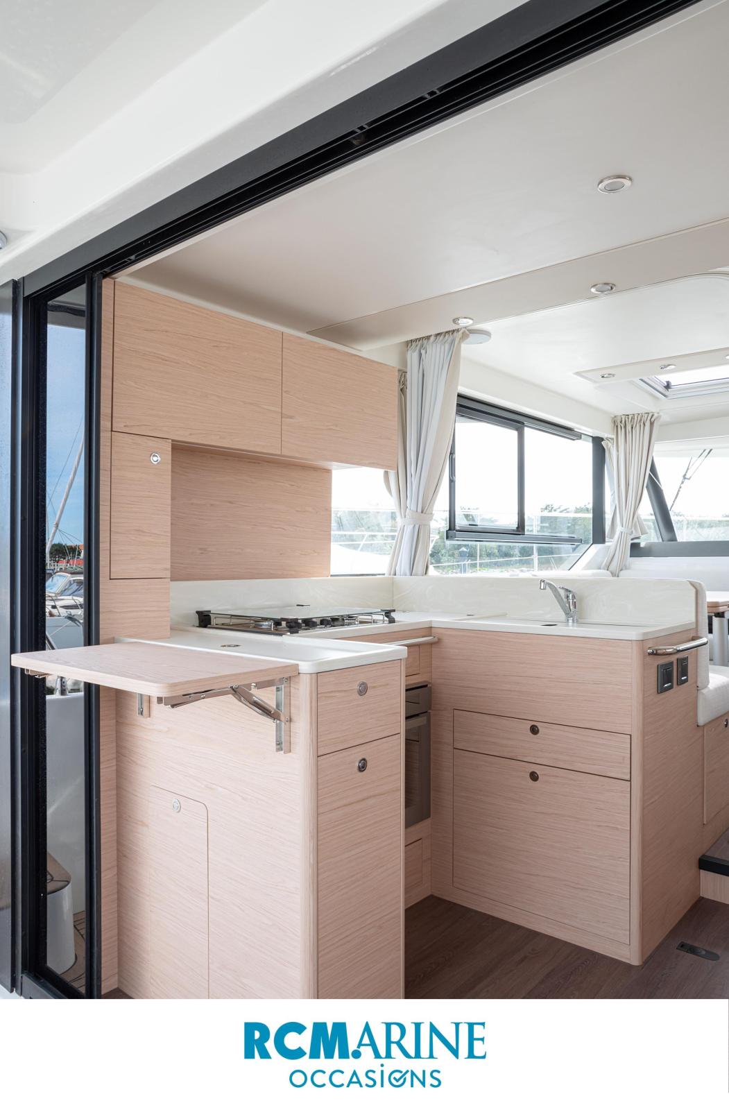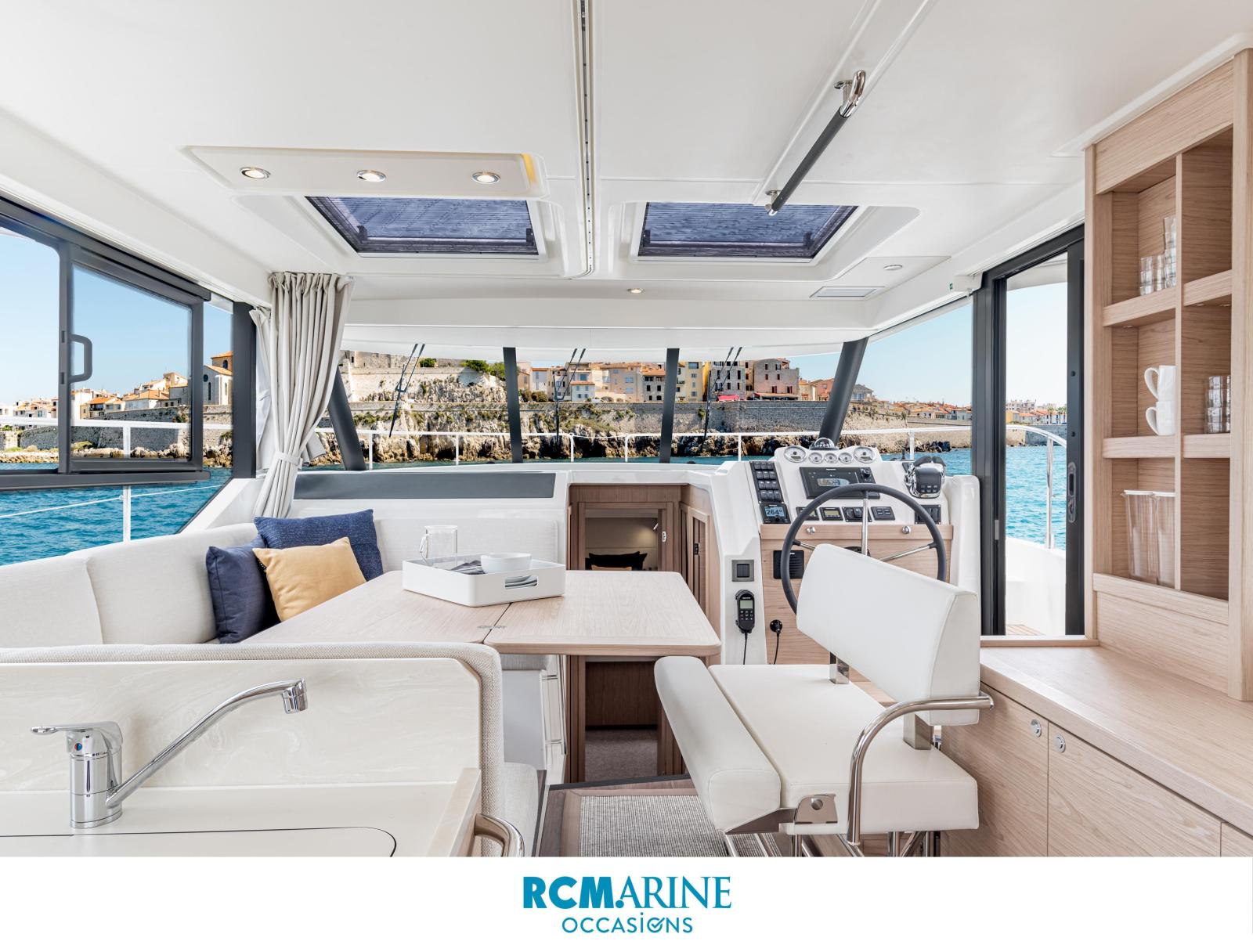À bord, les volumes impressionnent immédiatement. Le vaste salon baigné de lumière naturelle crée une atmosphère chaleureuse et contemporaine, tandis que la cuisine parfaitement intégrée invite à prolonger les moments de convivialité. Les espaces nuit offrent un confort remarquable, avec des cabines pensées pour préserver intimité et sérénité lors des navigations au long cours.