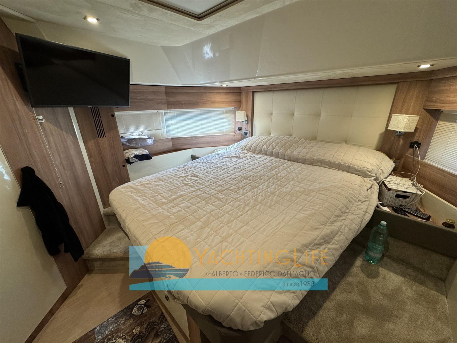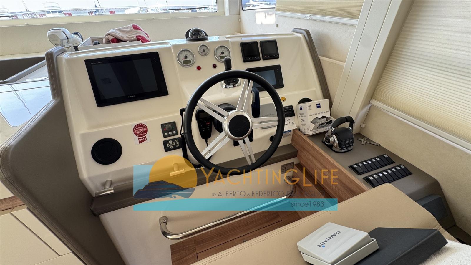 Alarme moteur, Auto Dynamic Trim Interceptor, Eau sous pression, Douche de cockpit, Double barre à roue, Flaps hydrauliques, Extincteur(s) fixe(s), Indicateurs de flaps, Éclairage de courtoisie, Spots sous-marins, Panneau solaire (per ricarica batterie 20Amp-400w), Passerelle (idraulica), Plateforme arrière (idraulica), Pompe de cale automatique, Pompe de cale manuelle, Porte latérale, Cockpit en teck, Prise de quai, Guindeau électrique, Echelle de bain, table de cockpit, Corne.