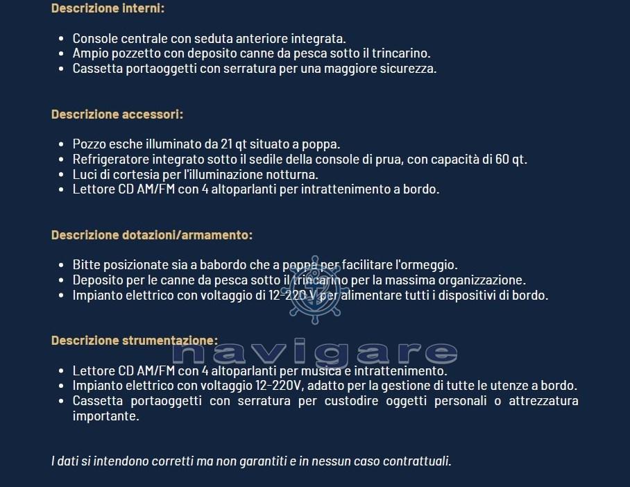 Alarme moteur, Eau sous pression, Pompe de cale automatique, Prise de quai, Guindeau électrique, Echelle de bain.