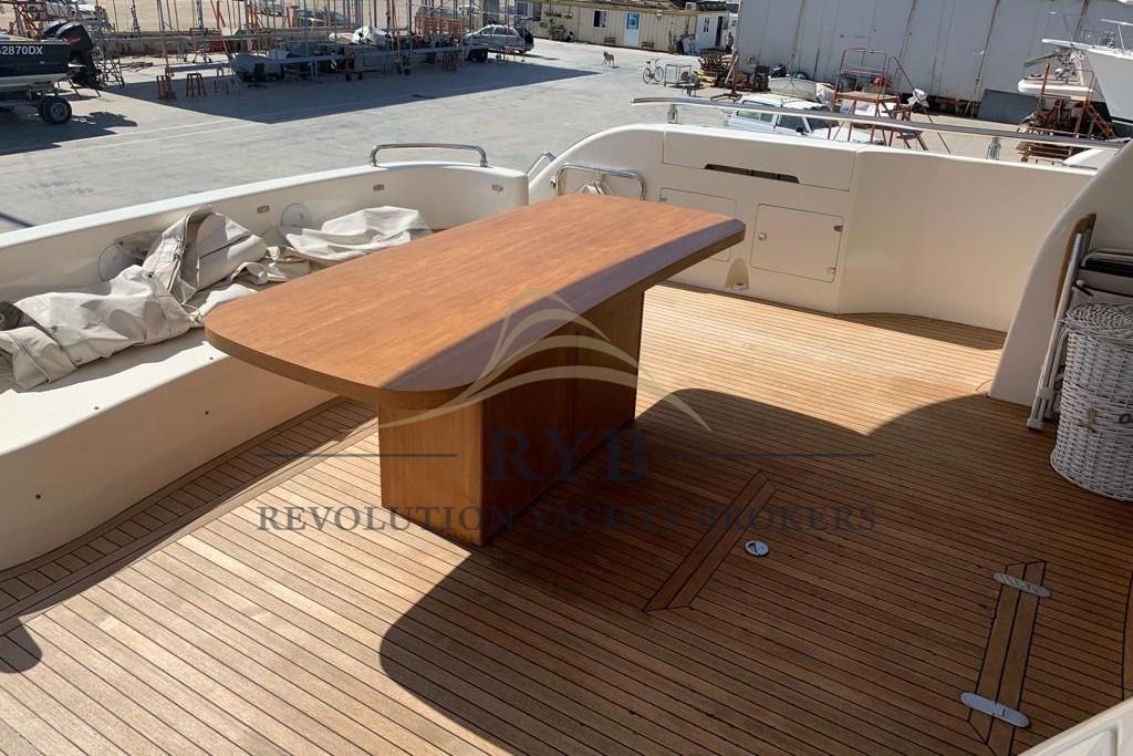 Eau sous pression, Éolienne, Grue de flybridge, Éclairage de courtoisie, Spots sous-marins, Passerelle, Plateforme arrière, Porte latérale, Cockpit en teck, Rollbar, Guindeau électrique, Echelle de bain, table de cockpit, Annexe (IN FLY), Winch électrique arrière.