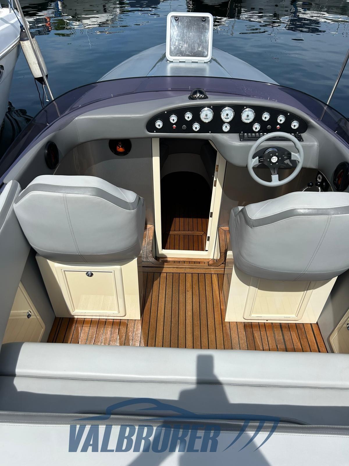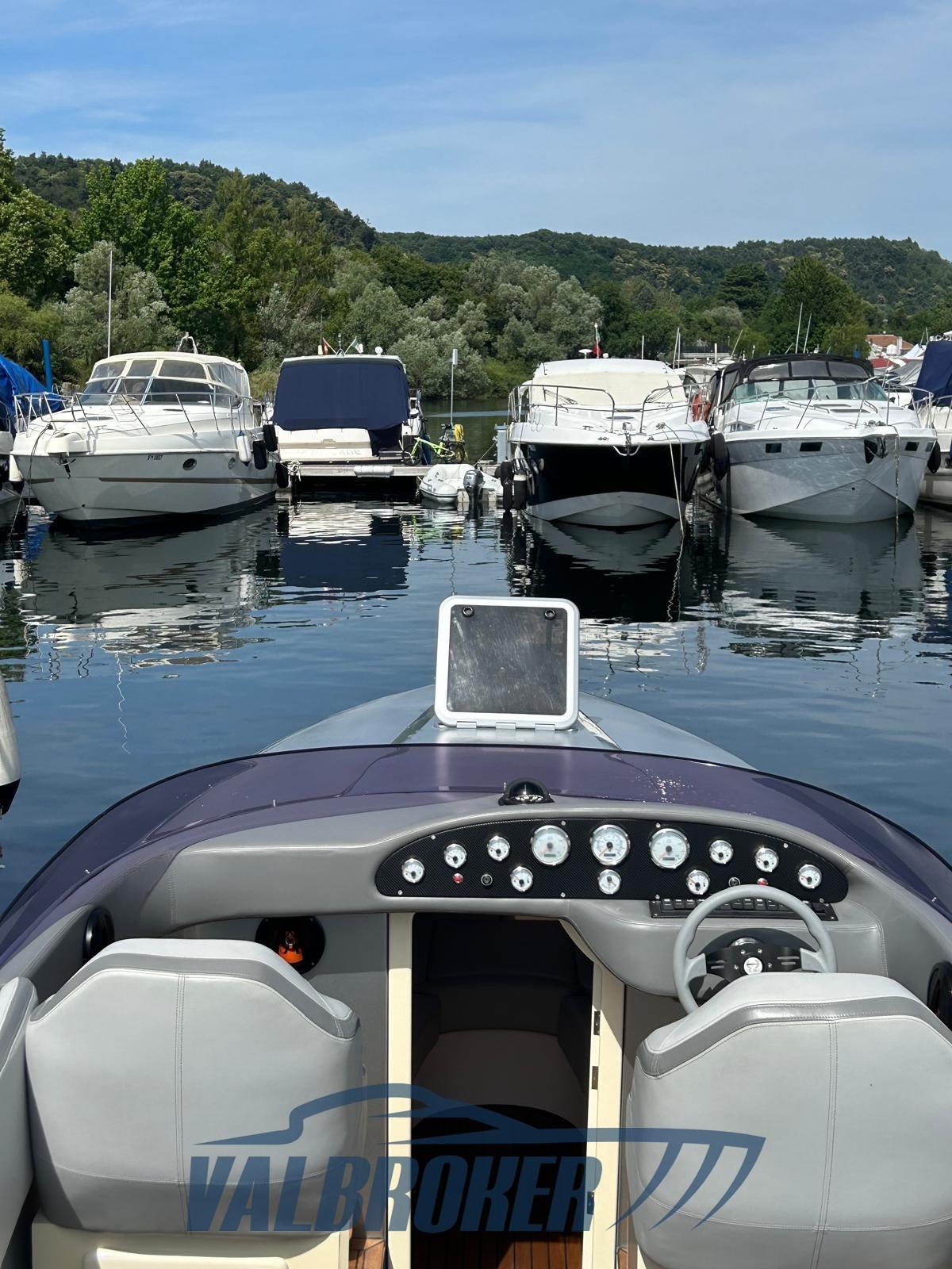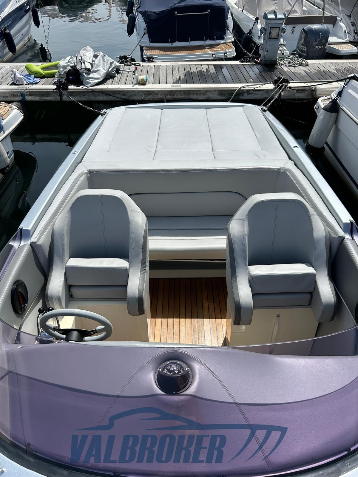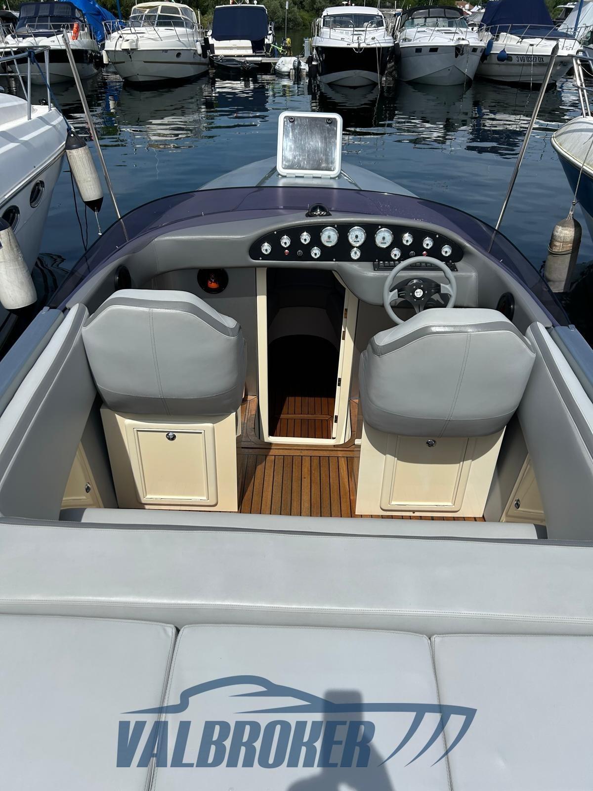 Bateau à moteur offshore rapide du chantier naval du lac de Côme. Lignes épurées, excellente navigabilité. Bain de soleil confortable à l’arrière. Propre et bien rangé, entièrement fonctionnel. Propulsé par 2x300HP Cummins V6 ligne diesel avec seulement 194 heures de fonctionnement. Réduction de la consommation. Piles neuves.