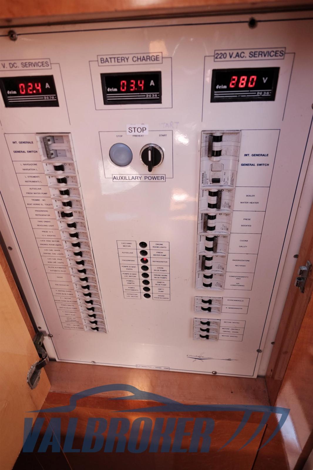 Eau sous pression, 4 Batteries, Douche de cockpit, Flaps hydrauliques, Plateforme arrière (allungata in vetroresina), Guindeau électrique, Echelle de bain, table de cockpit.