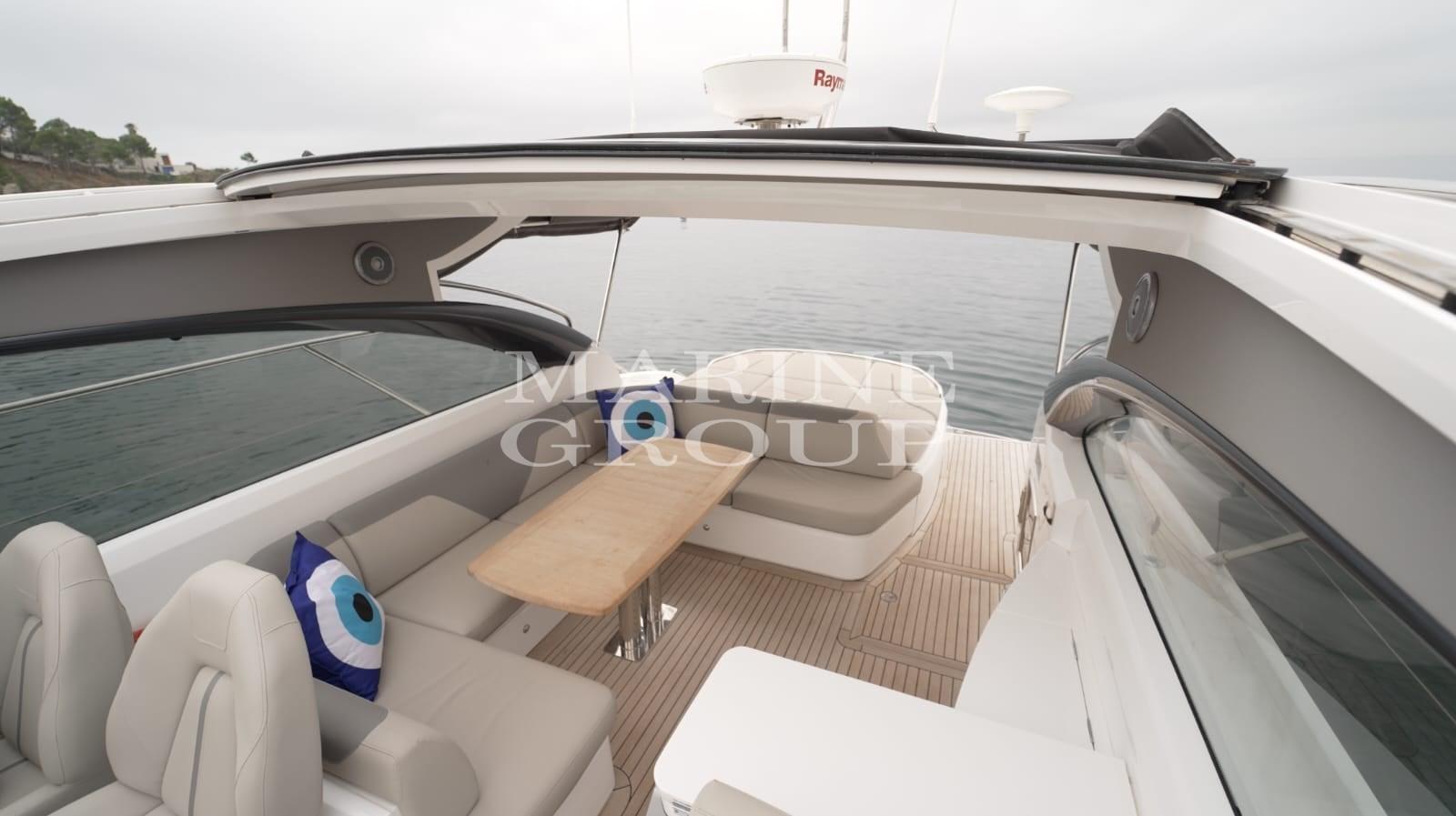 Haut-parleurs, climatisation, barbecue/barbecue, bimini, chaudière, climatisation réversible, congélateur, housse de cockpit, coussins complets, coussins arrière, coussins à l’avant, coussins de cockpit, réfrigérateur externe, réfrigérateur interne, onduleur, plancher intérieur en bois, plaque céramique, prises internes 12v, prises internes 220v, radio AM/FM, réservoir d’eaux usées, stéréo, auvent, TV, chargeur de batterie, commande électronique moteur, douche extérieure, propulseur d’étrave, Garage tender, toit rigide, coulée dans le cockpit, feux de courtoisie, feux sous-marins, passerelle (électrohydraulique), plateforme (coulée), cockpit en teck, prise 220V pour quai, prise d’entrée d’eau du quai, guindlard électrique, échelle de nage, siège du copilote, stabilisateurs (Seakeeper), table de cockpit, table de salon pliante.