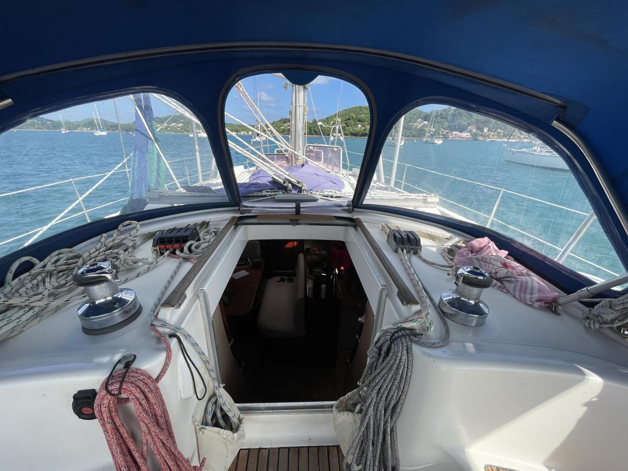 Sur le roof, un winche Lewmar 30 ST et un Lewmar 40 ST électrique sur le côté bâbord