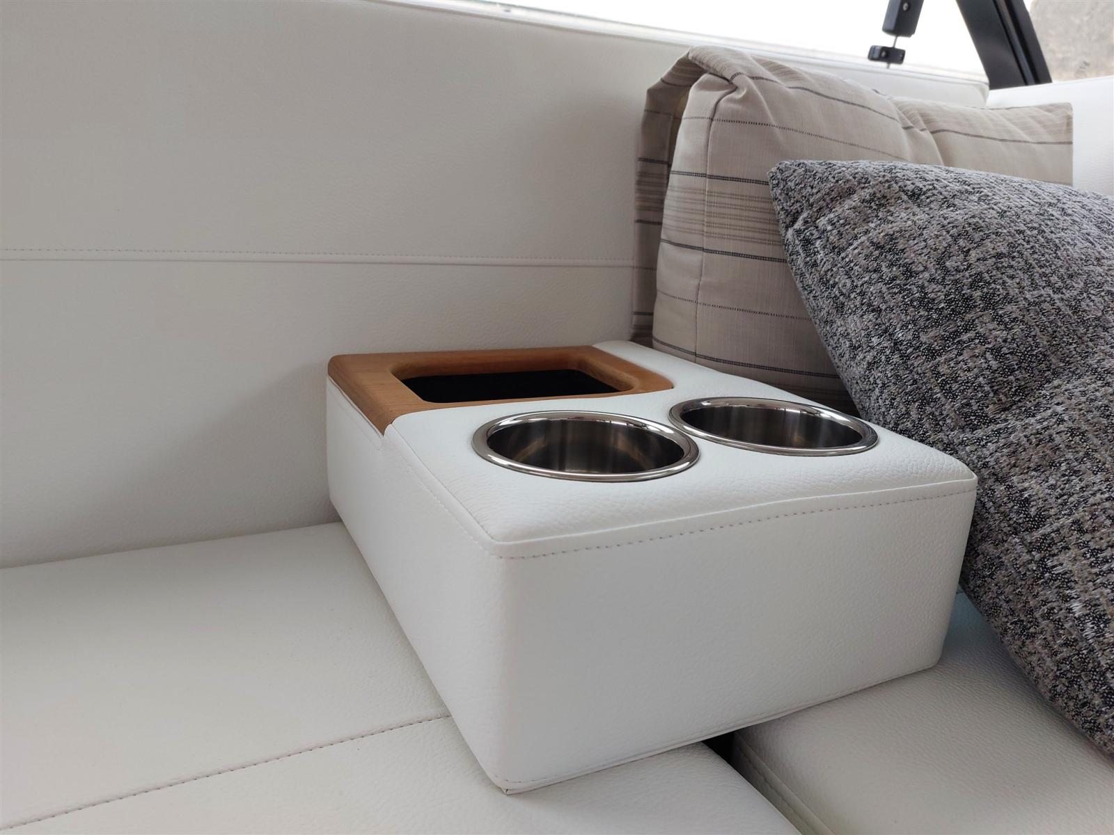 Alarme gaz, 2 Alarme moteur, Alarme de pompe de cale, Alternateur, Auto Dynamic Trim Interceptor, Eau sous pression, Couleur spéciale (Atlantic Blue), Filères, Douche de cockpit, Phares fixes arrière, Flaps électriques (Lenco), Hard top (elettrico), Extincteur(s) fixe(s), Indicateurs de flaps, Lavabo dans le cockpit, Éclairage de courtoisie, Spots sous-marins, Passerelle (elettroidraulica), Plateforme arrière, 3 Pompe de cale automatique, Pompe de Lavage du Pont, Pompe à Eau de Mer, Porte latérale, Prise de quai, Connexion eau sous pression à quai, Onduleur, Guindeau électrique, Echelle de bain, Stabilisateurs (Seakeeper), table de cockpit, Filières avec sortie latèrale, Corne, Winch électrique avant.
