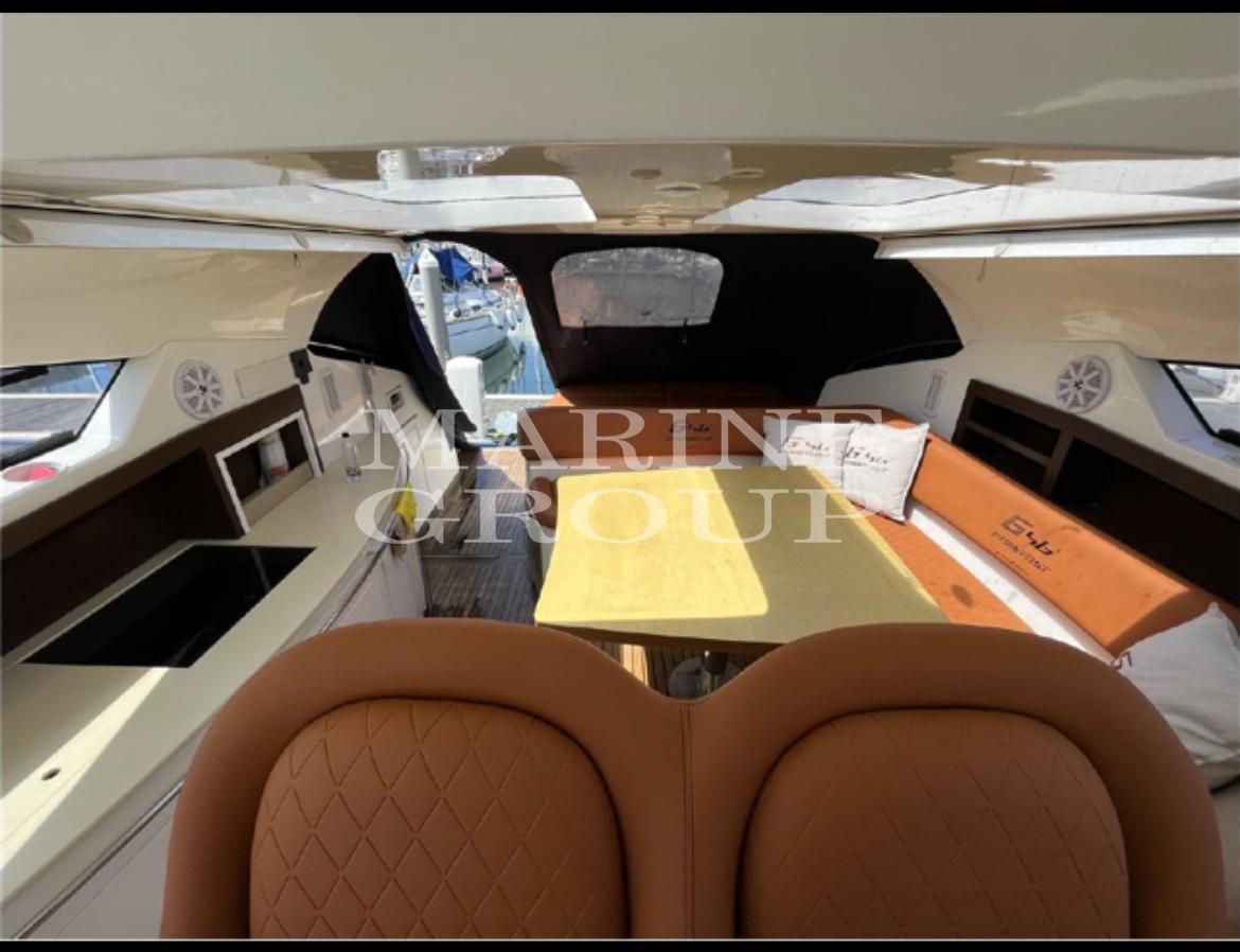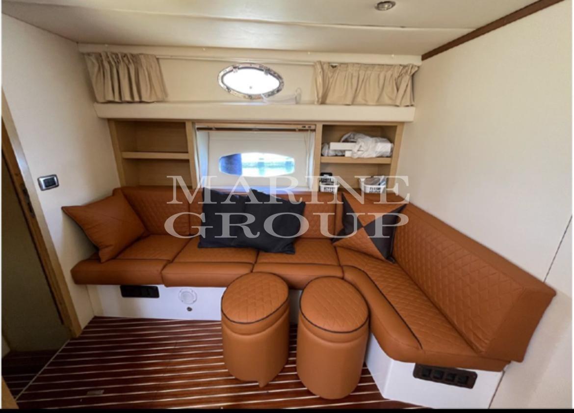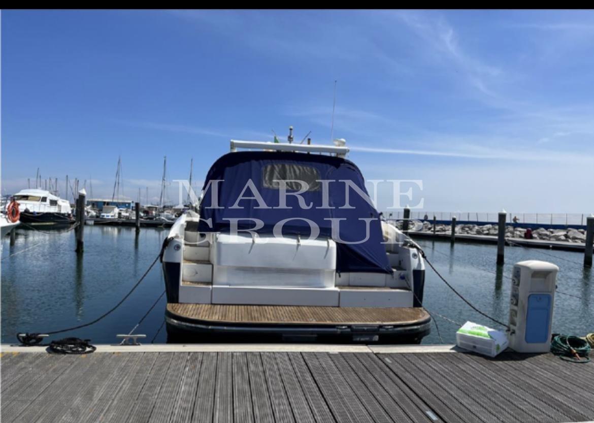 Douche de cockpit, Phare de poursuite, Flaps hydrauliques, Hard top, Éclairage de courtoisie, Passerelle (Idraulica a scomparsa), Plateforme arrière, Cockpit en teck, Prise de quai, Guindeau électrique, Echelle de bain, Corne.