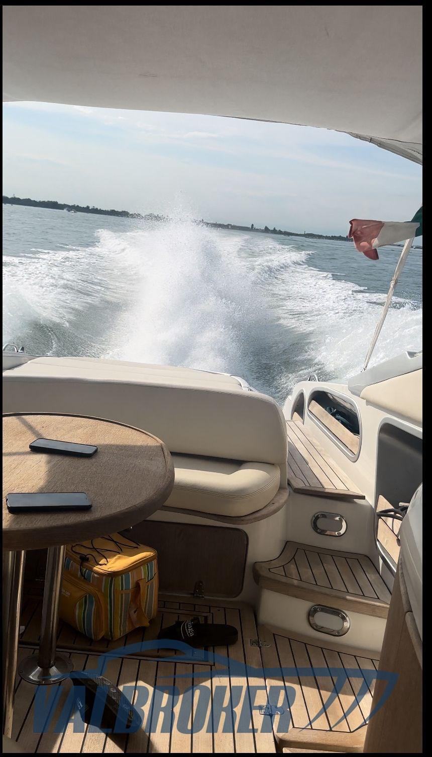 L’Albatro Marine 12e90 est un bateau ouvert conçu pour offrir des performances élevées et un confort à bord. Équipé de 2 Yanmar de 440 ch, capables d’atteindre une vitesse maximale de 52 nœuds et une vitesse de croisière de 35 nœuds. L’aménagement intérieur comprend une cabine double séparée à la proue, en cuir bleu, une salle de bain et une salle à manger. Idéal pour ceux qui recherchent un bateau sportif avec des espaces confortables, l’Albatro Marine 12e90 est parfait pour des excursions rapides et des croisières en pleine détente. Transmission avec hélices de surface, Jolly drive. Ouverture du compartiment moteur électrique.