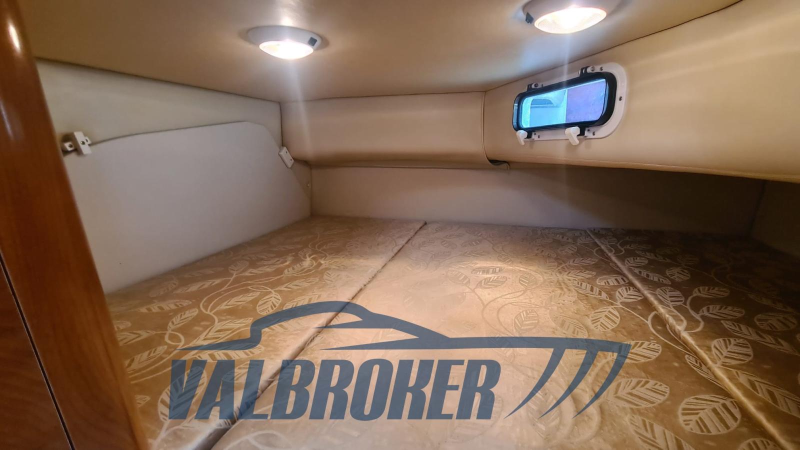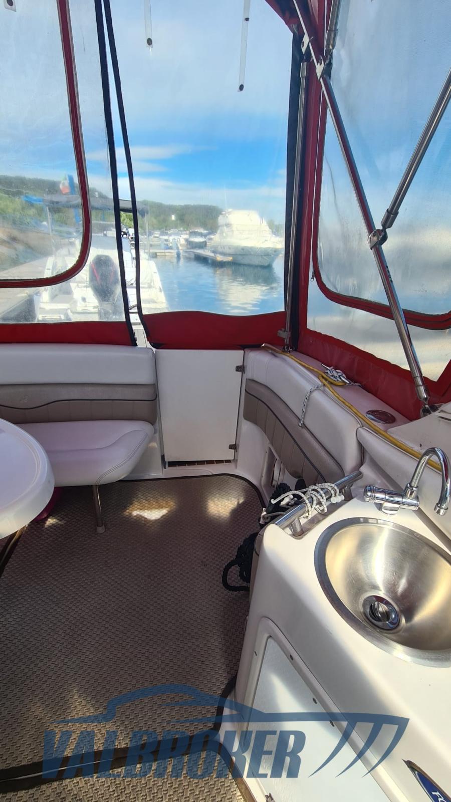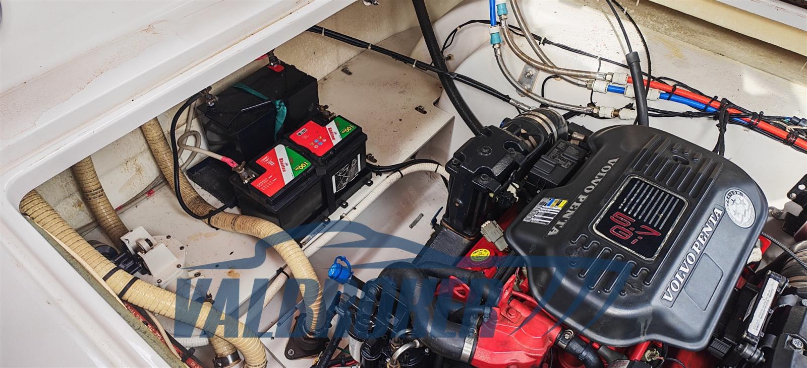Chantier naval américain, propulsé par un moteur essence Volvo Penta 5,7 gi Dp-S V8 1x280 chevaux. Dinette convertible en lit double en forme de V à l’avant, couchette à la poupe, salle de bain avec porte.