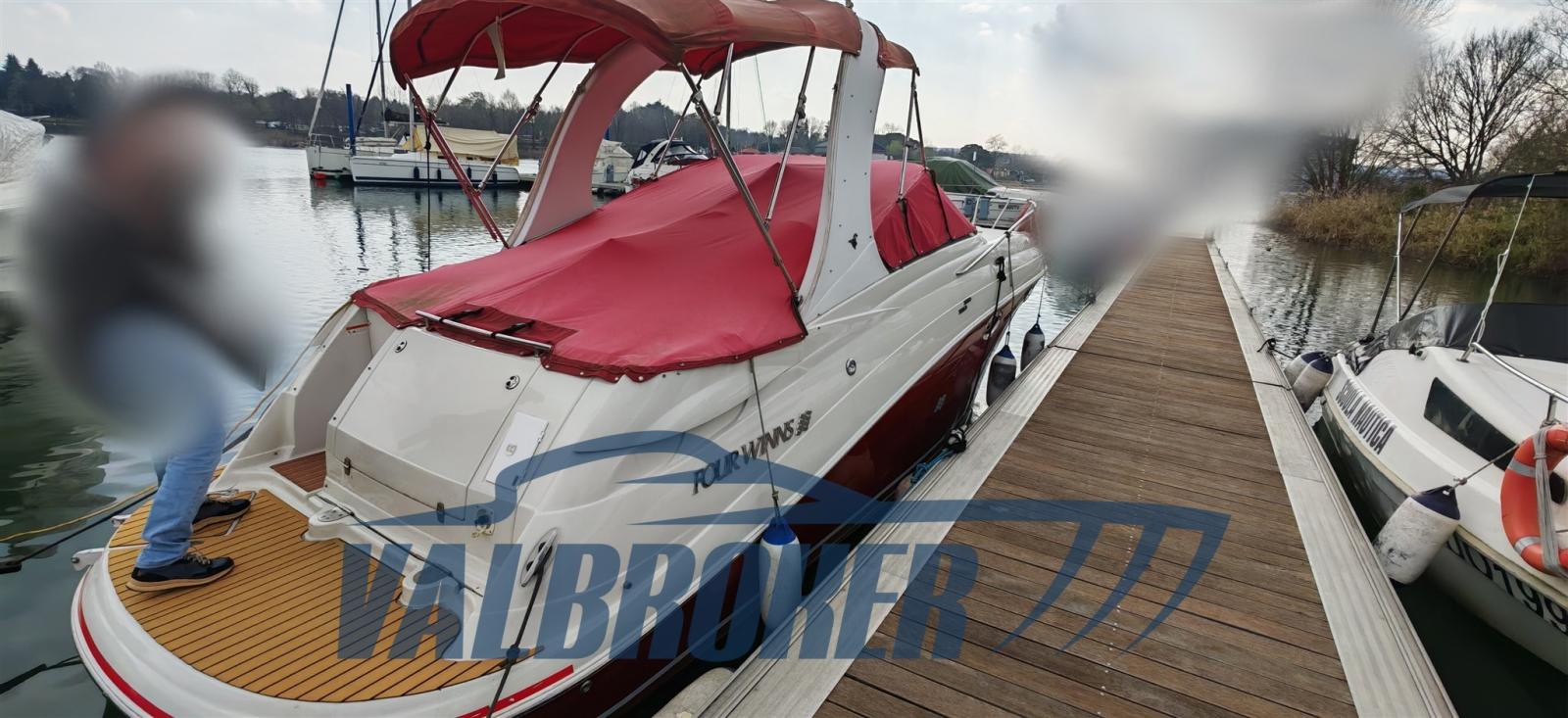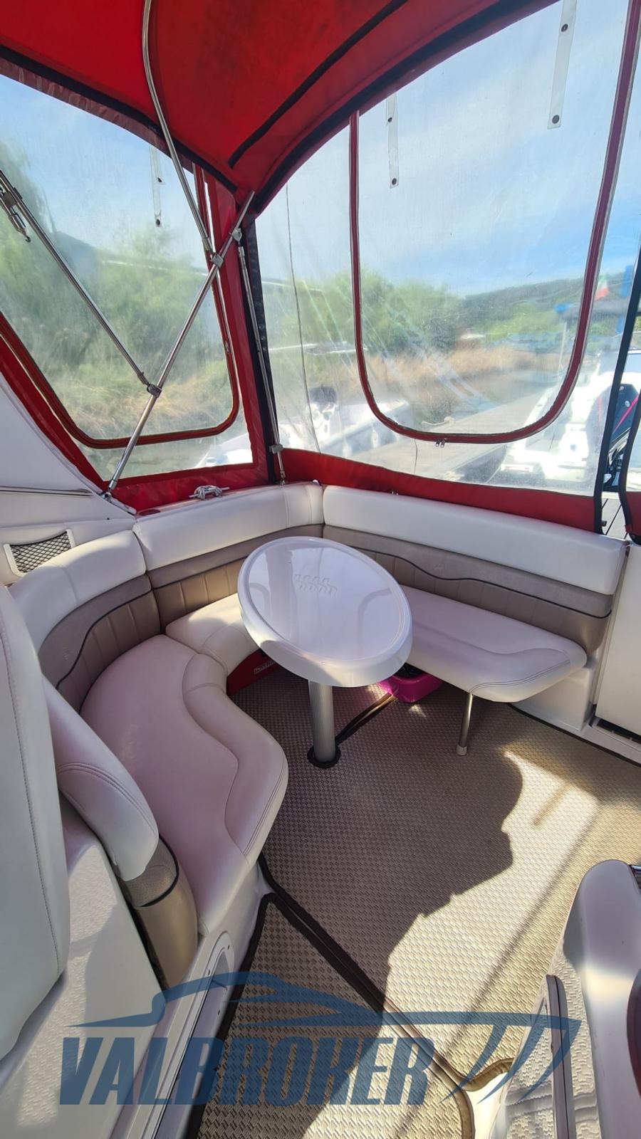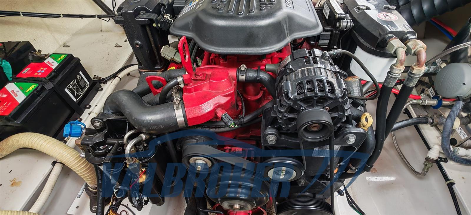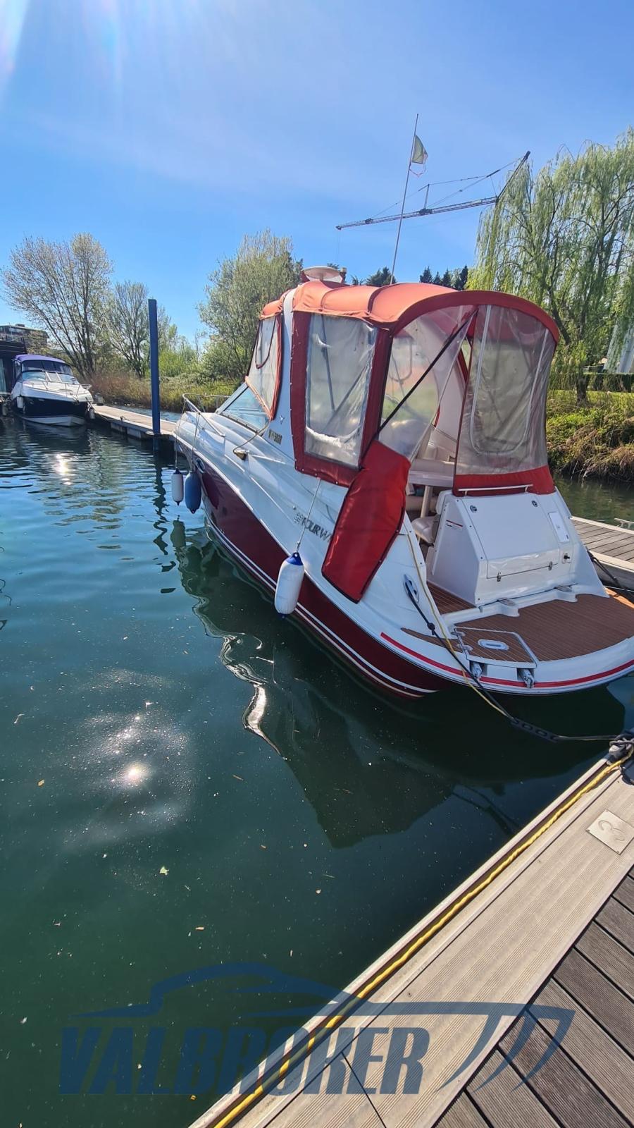 Chantier naval américain, propulsé par un moteur essence Volvo Penta 5,7 gi Dp-S V8 1x280 chevaux. Dinette convertible en lit double en forme de V à l’avant, couchette à la poupe, salle de bain avec porte.