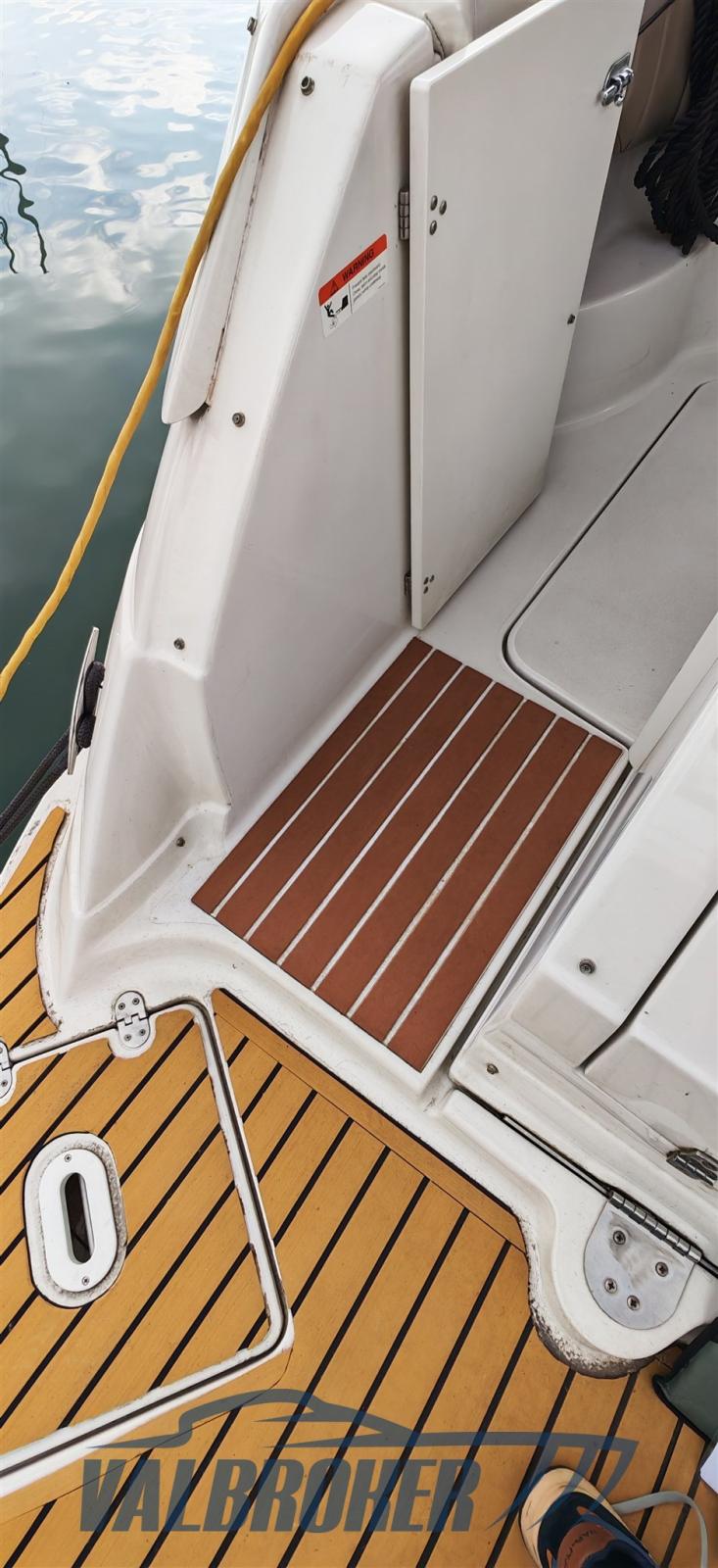 Ancre (30 m), Ouverture du compartiment moteur électrique, Eau sous pression, 3 Batteries, Couleur spéciale (rosso), Douche de cockpit, Flaps hydrauliques, Lavabo dans le cockpit, Éclairage de courtoisie, Plateforme arrière (Teak sintetico), Connexion eau sous pression à quai, Rollbar, Guindeau électrique, Echelle de bain, table de cockpit.