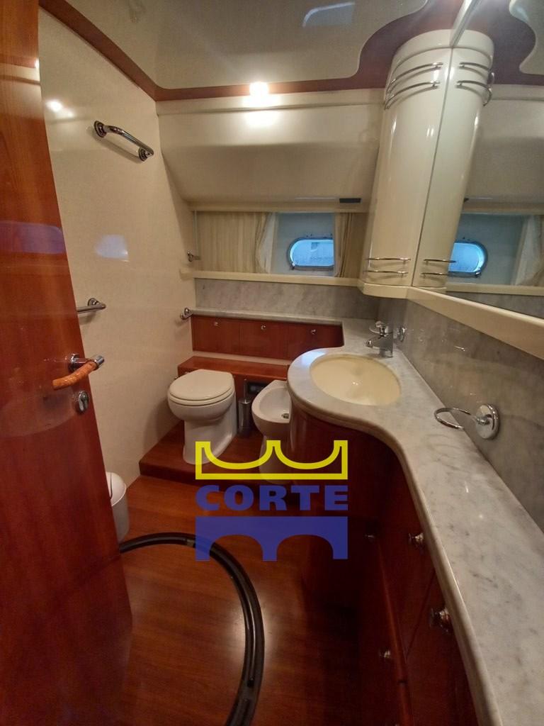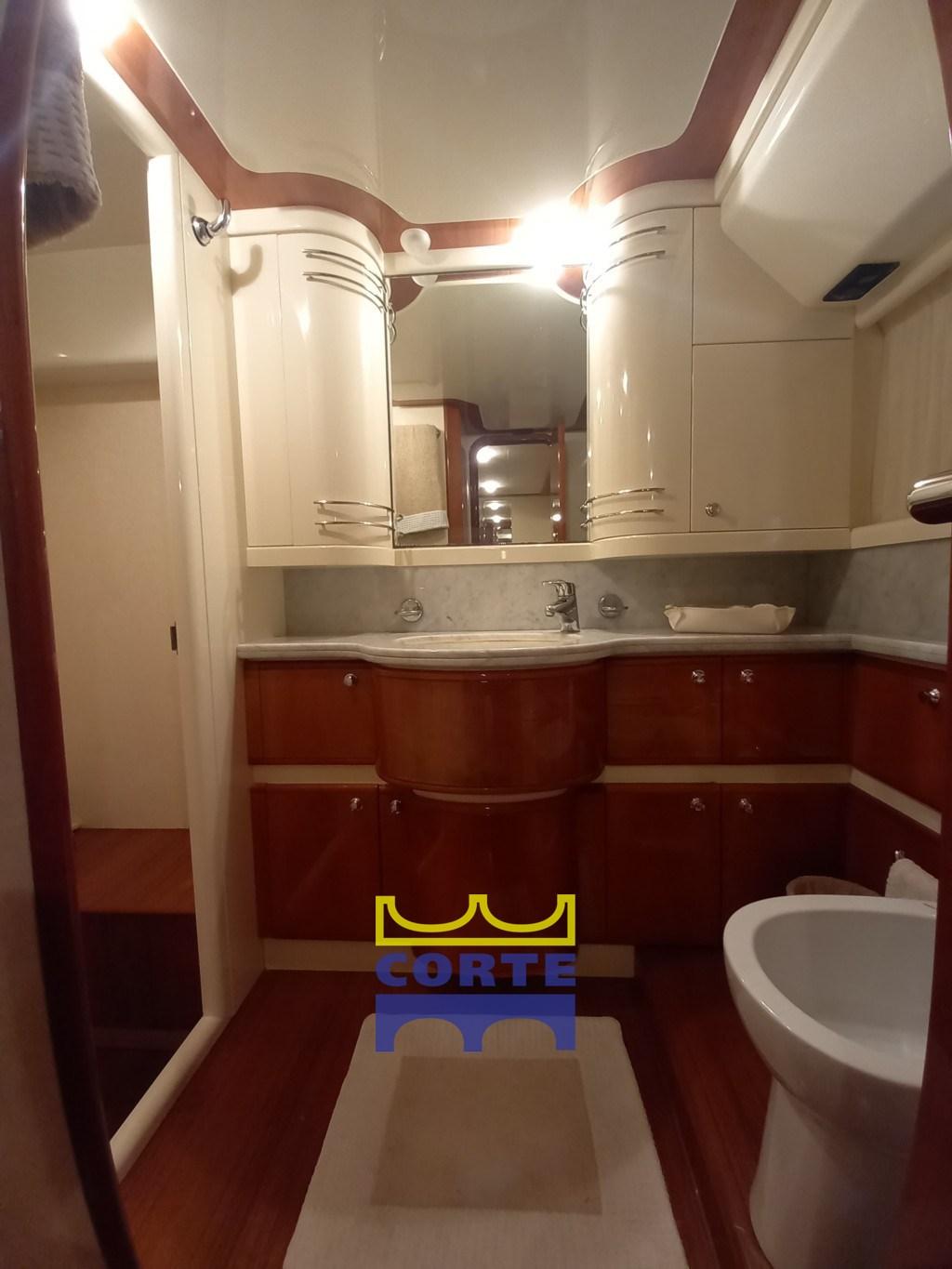 Alarme gaz (sala macchine), Alarme moteur, Alarme de pompe de cale, 2 Ancre, Eau sous pression, Passavant en teck, Câble d’alimentation à quai, Douche de cockpit, Double barre à roue, Flaps hydrauliques, Grue de flybridge, Extincteur(s) fixe(s) (vano motori), Indicateurs de flaps, Lavage de chaine, Éclairage de courtoisie, Moniteur de batterie, Moteur hors-bord pour annexe, Passerelle, Plateforme arrière (di poppa in teak con apertura idraulica), Pompe de cale automatique, Pompe de cale manuelle, Pont en teck, Porte latérale, Porte latérale, Cockpit en teck, Prise de quai, Connexion eau sous pression à quai, Rollbar, 2 Guindeau électrique, Echelle de bain, table de cockpit (in teak con sedie), Annexe (completo di motore), Corne, 2 Winch électrique arrière, 2 Winch électrique avant.