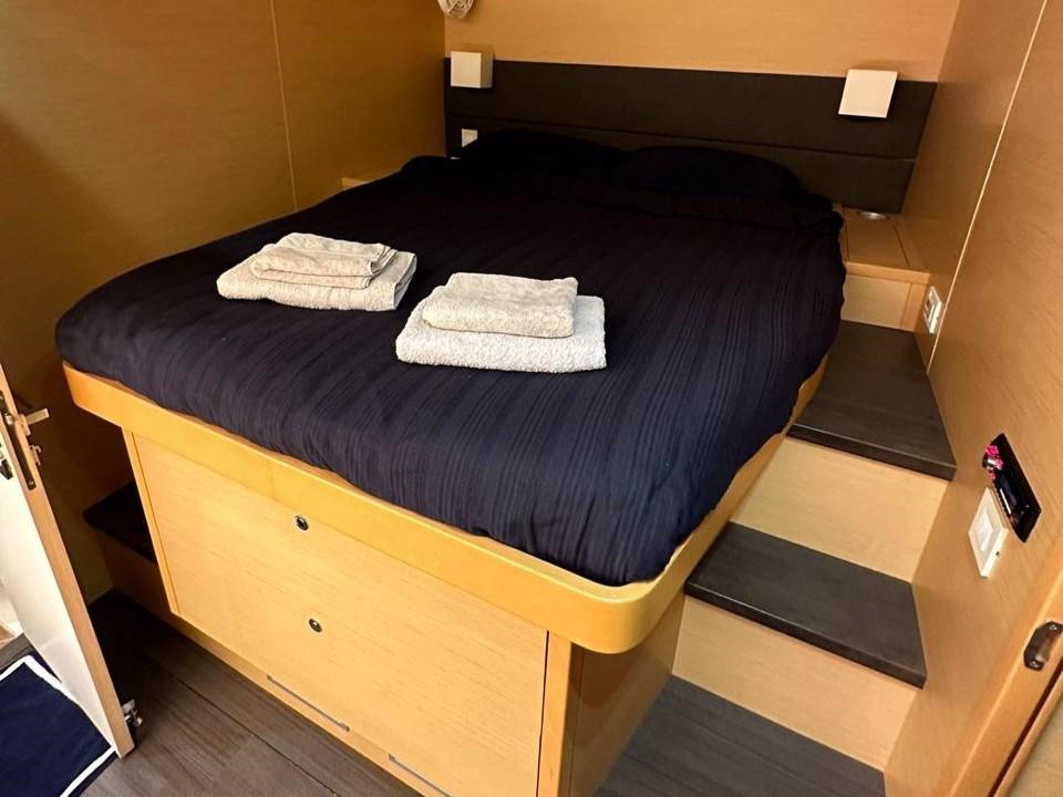 3 lits doubles italiens, 1 lit lit jumeau, 1 cabine d’équipage, 1 toilette d’équipage, 4 toilettes sous douche sans bidet
