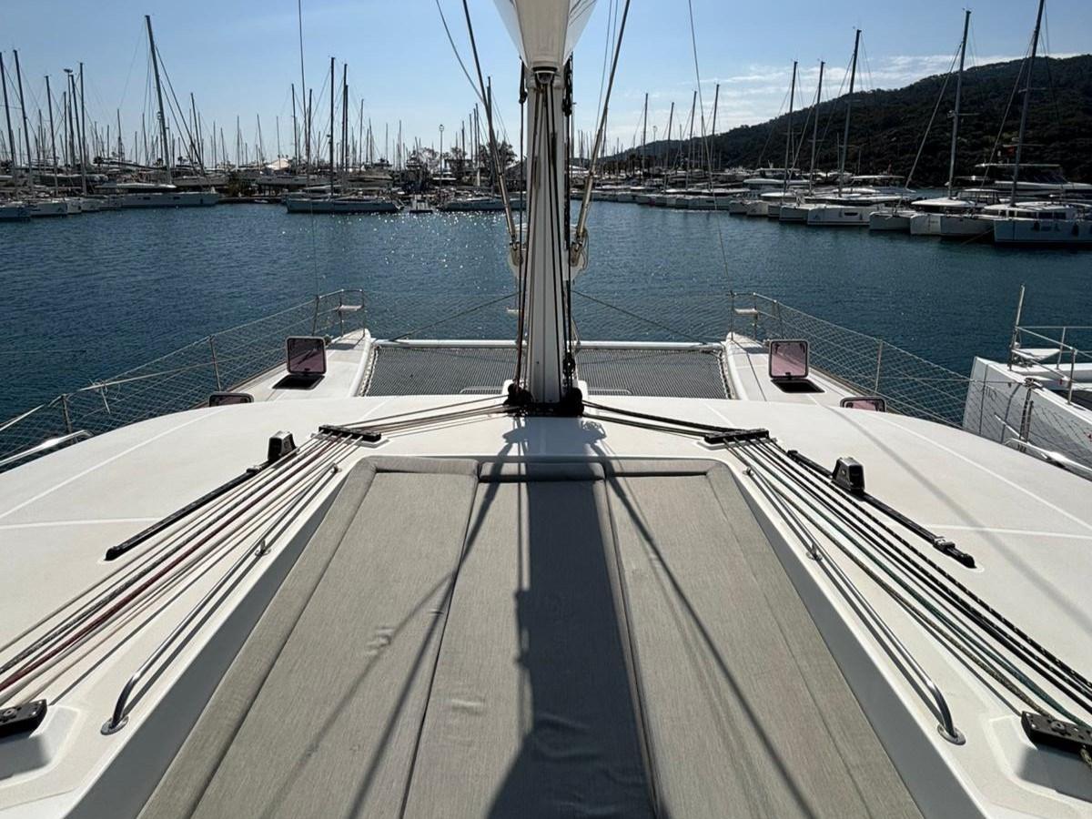 À la proue, il y a des filets pour bronzer et de grands espaces praticables, ainsi que des casiers confortables pour le rangement.