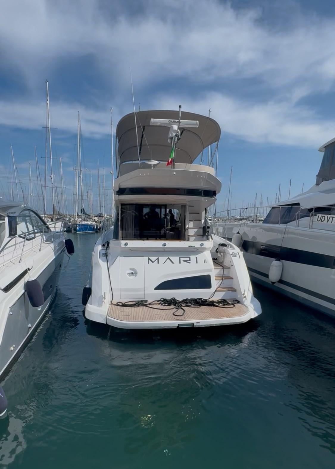 Alarme moteur, Alarme de pompe de cale, Auto Dynamic Trim Interceptor, Flaps électriques, Indicateurs de flaps, Éclairage de courtoisie, Spots sous-marins, Passerelle, Plateforme arrière, Cockpit en teck, Guindeau électrique, Echelle de bain, table de cockpit, Winch électrique arrière.