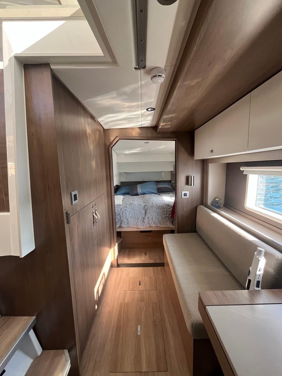 Le Bali 4.2 version propriétaire incarne l’élégance et l’indépendance en mer, combinant espace et autonomie pour des navigations sans compromis. Pensé pour le confort, il offre un intérieur raffiné avec une suite propriétaire, des équipements modernes et une cuisine équipée comme à la maison. Son autonomie en énergie et en eau douce permet d’explorer sans contrainte, tandis que son gréement performant et son électronique avancée garantissent des navigations fluides et sécurisées.