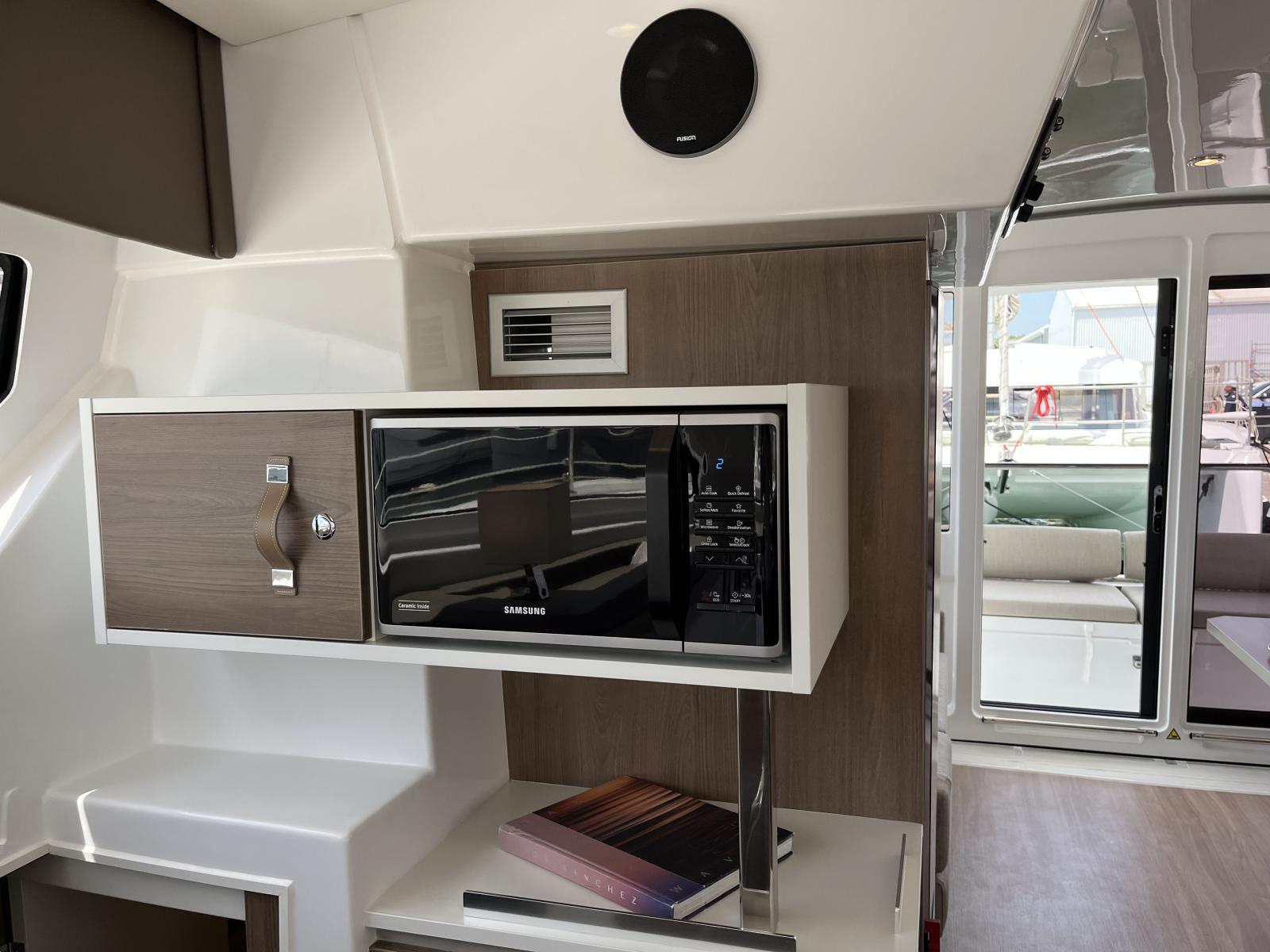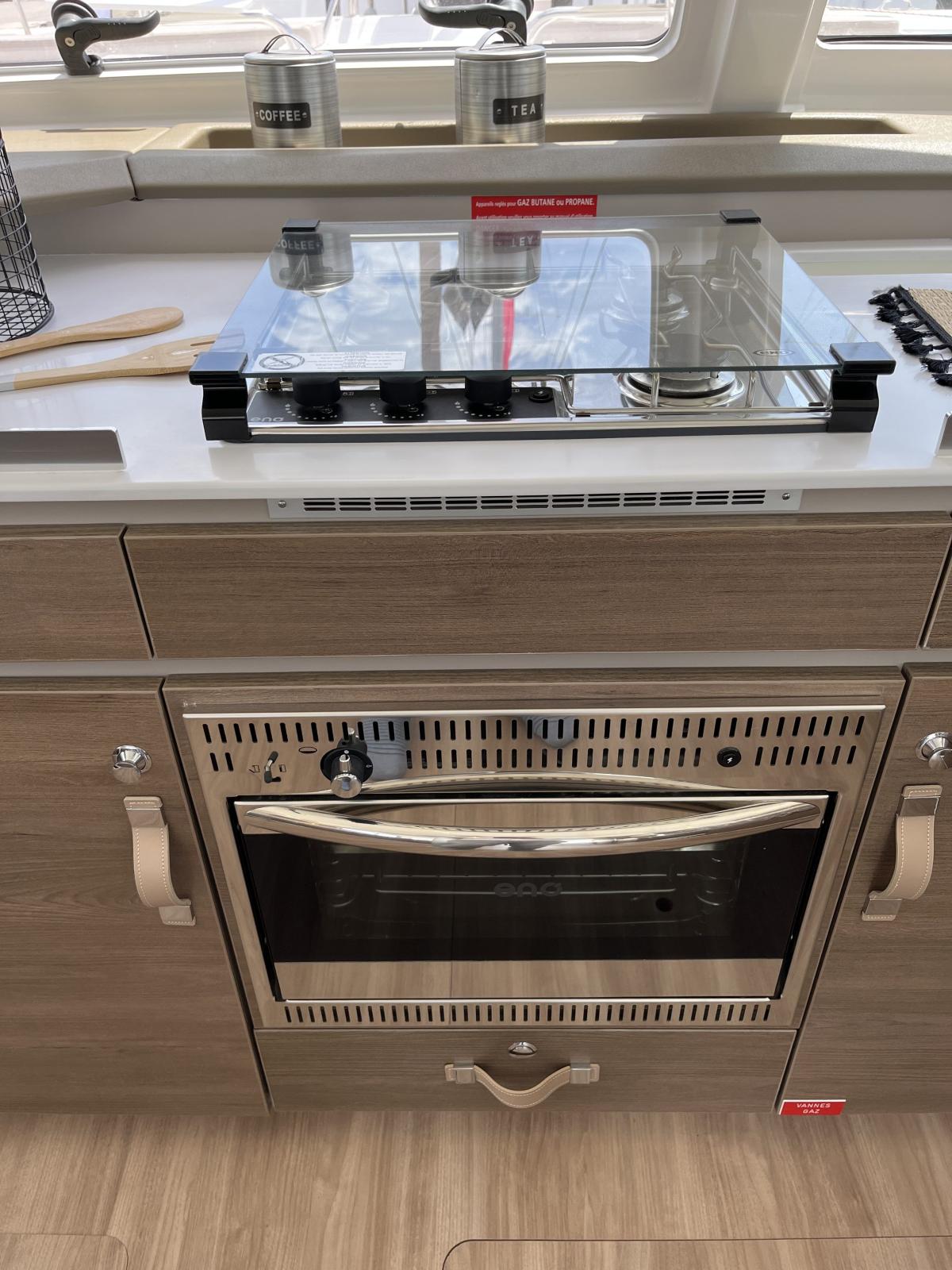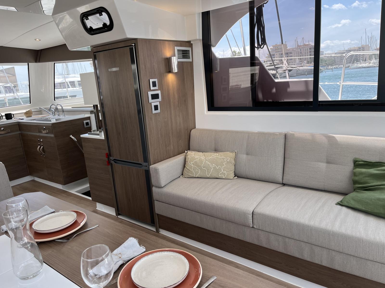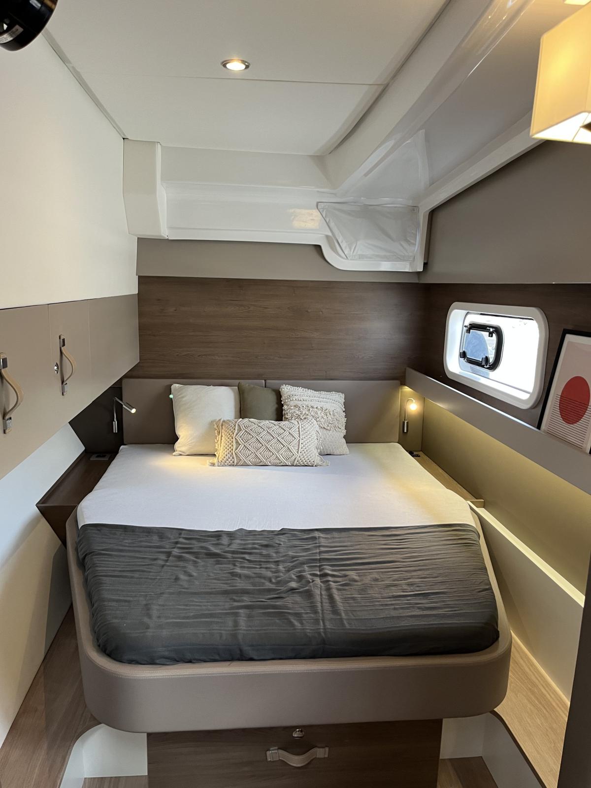 Pensé pour offrir une vie à bord agréable et autonome, il dispose d’un dessalinisateur 105 L/h, de panneaux solaires et d’une cuisine entièrement équipée avec plancha, idéale pour des moments conviviaux en mer. Sa grande voile lattée à corne et son solent en Dacron avec lazy bag garantissent des navigations fluides et efficaces.