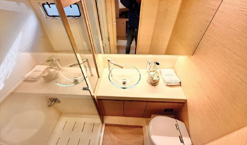 Ce dayboat premium combine élégance et performance avec 2 moteurs Volvo Penta IPS 650 (480 ch), joystick, et intercepteurs automatiques. Son intérieur spacieux offre une cabine propriétaire climatisée et une cuisine fonctionnelle. Le pont en teck inclut balcons hydrauliques, bain de soleil arrière électrique, tenderlift et T-Top avec inserts carbone. Équipé d’une électronique avancée Volvo (écrans multifonction, pilote automatique) et d’un éclairage LED.