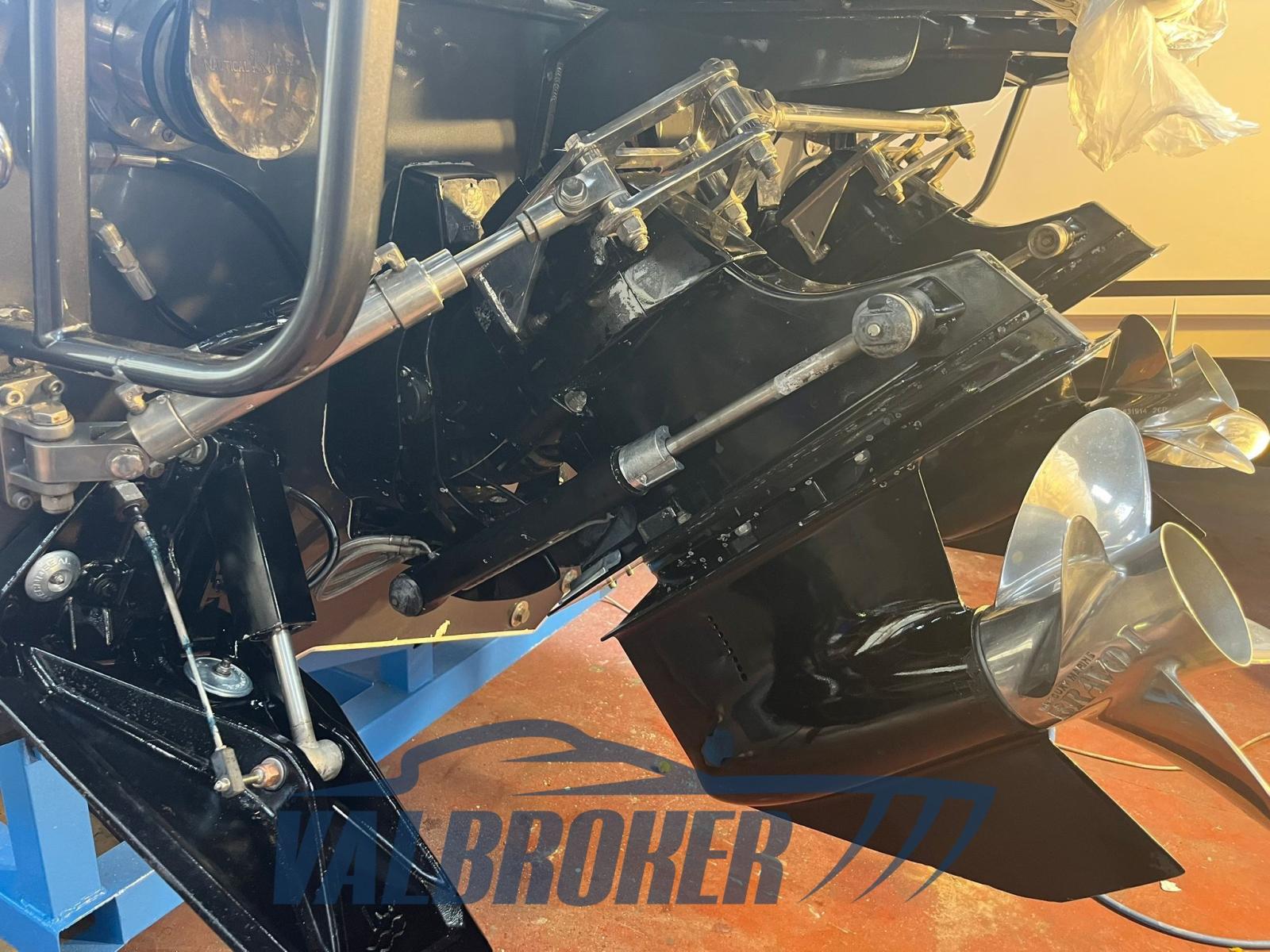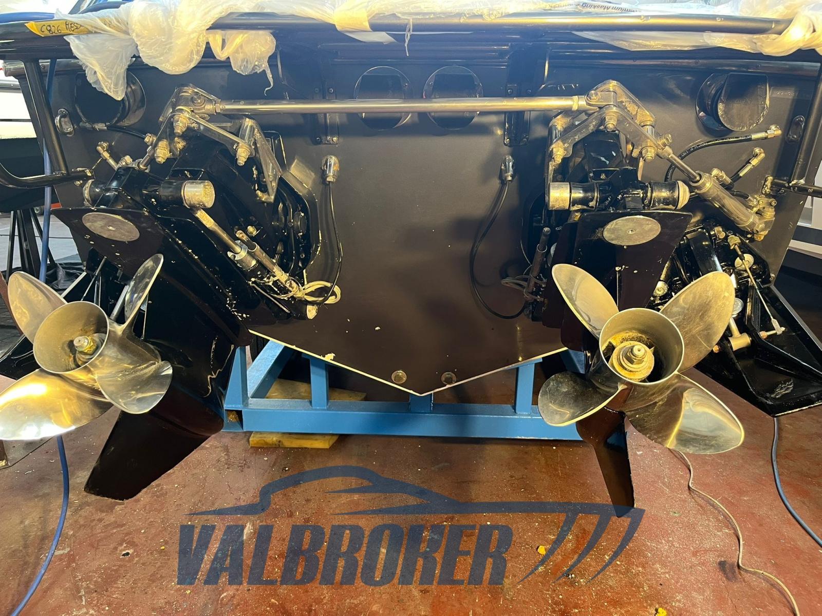 Un chantier naval américain très célèbre à Miami, spécialisé dans les bateaux offshore et de course. BATEAU NON PLAQUÉ. Année 2005, année modèle 2006, lancé en 2008. 2 moteurs Mercruiser MAG 496 V8 de 425 ch avec seulement 400 heures de transmissions de course XR XR Bravo I de moto avec traitement Mercury sea core.