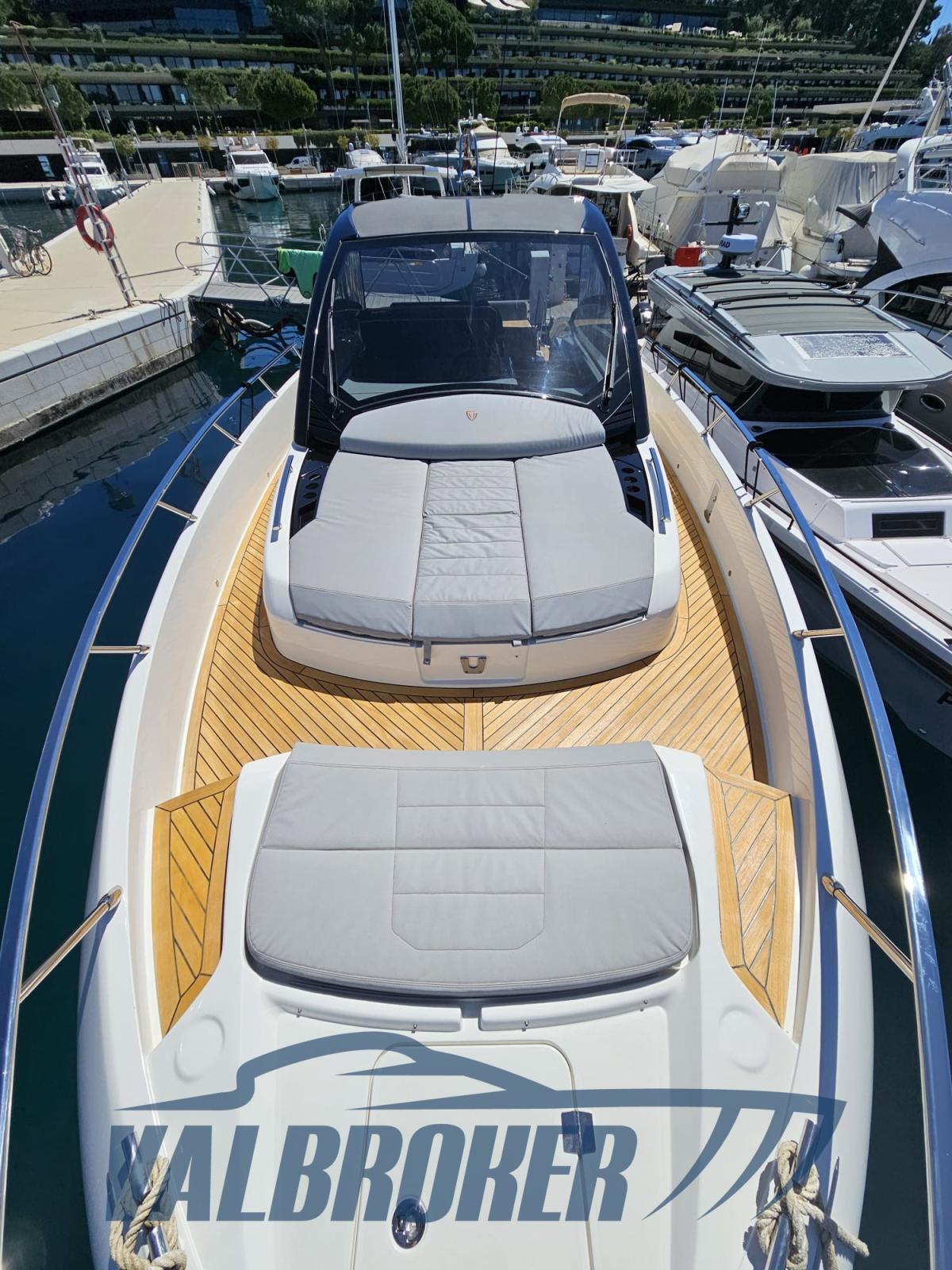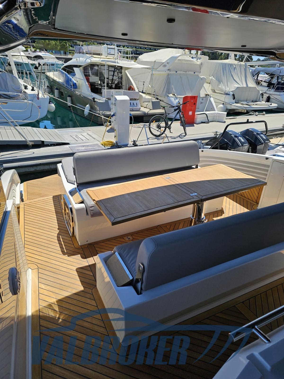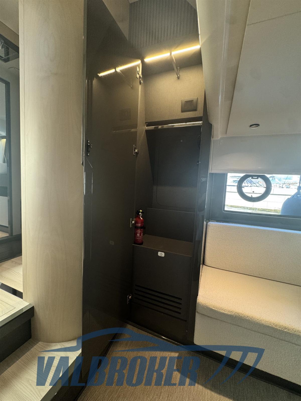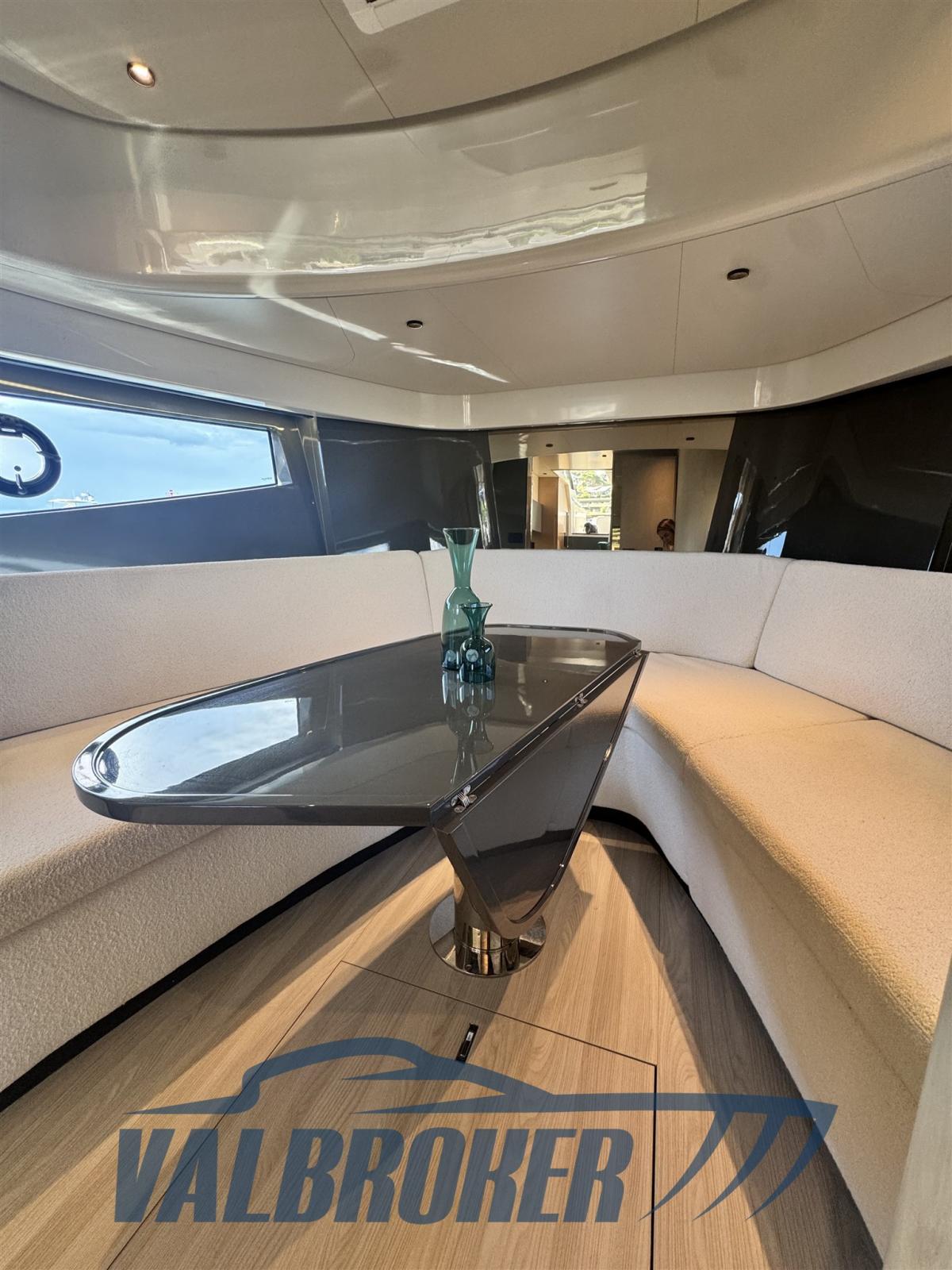 Des lignes captivantes combinées à un grand pare-brise et une excellente circulation de l’air dans le cockpit grâce au toit rigide avec ouverture en lattes. Il offre une grande cabine arrière pleine poutre pour le propriétaire, une élégante salle à manger à l’avant, convertible électriquement en une véritable seconde cabine et deux salles de bains. Les intérieurs sont modernes avec des matériaux luxueux et raffinés. À l’extérieur, l’élégance du design s’accorde parfaitement avec l’esprit sportif de ce nouveau modèle 100 % Made in Italy.