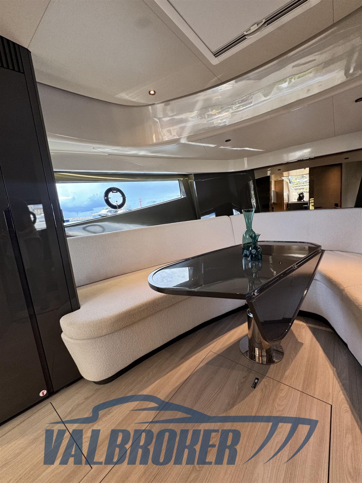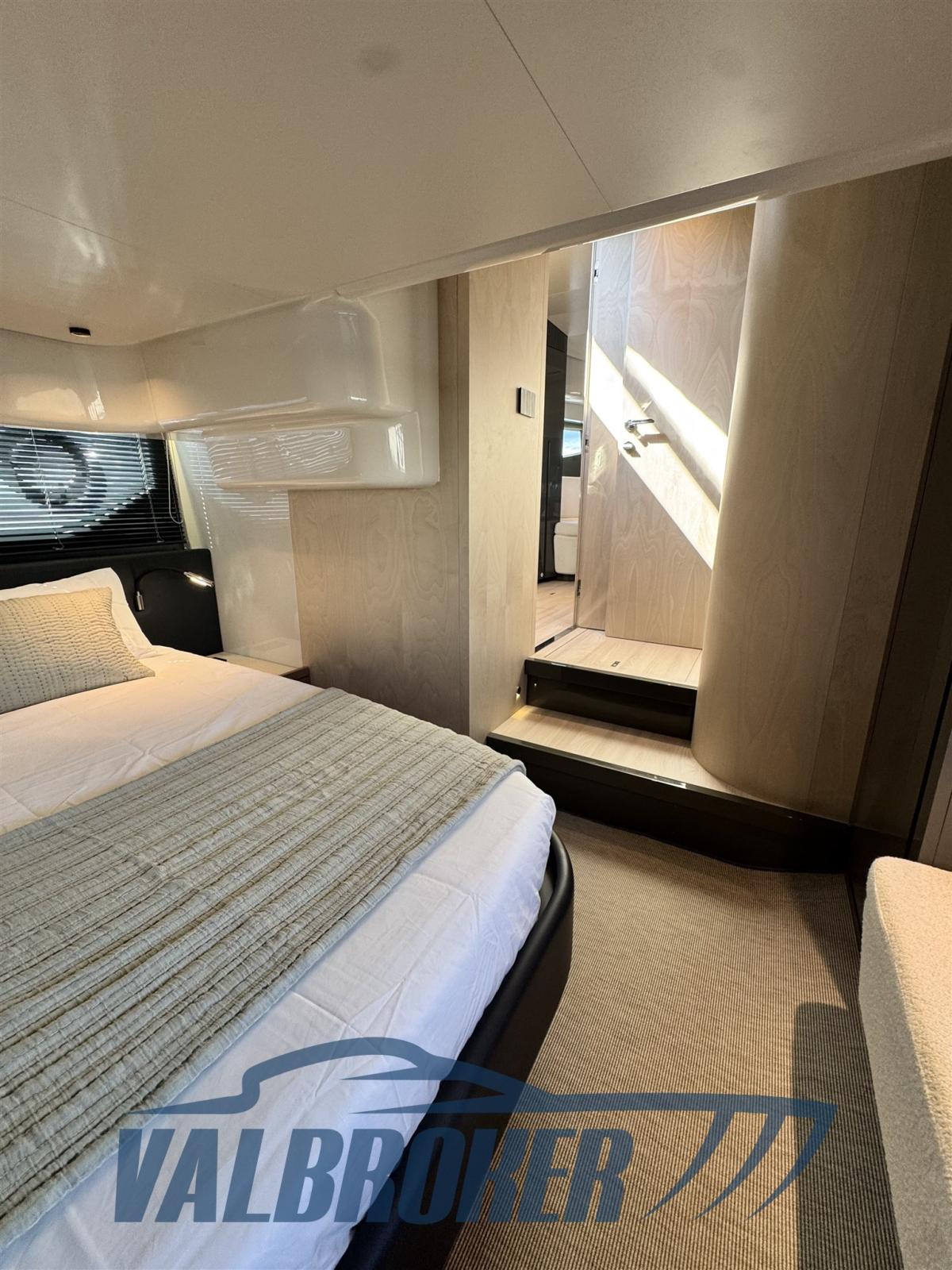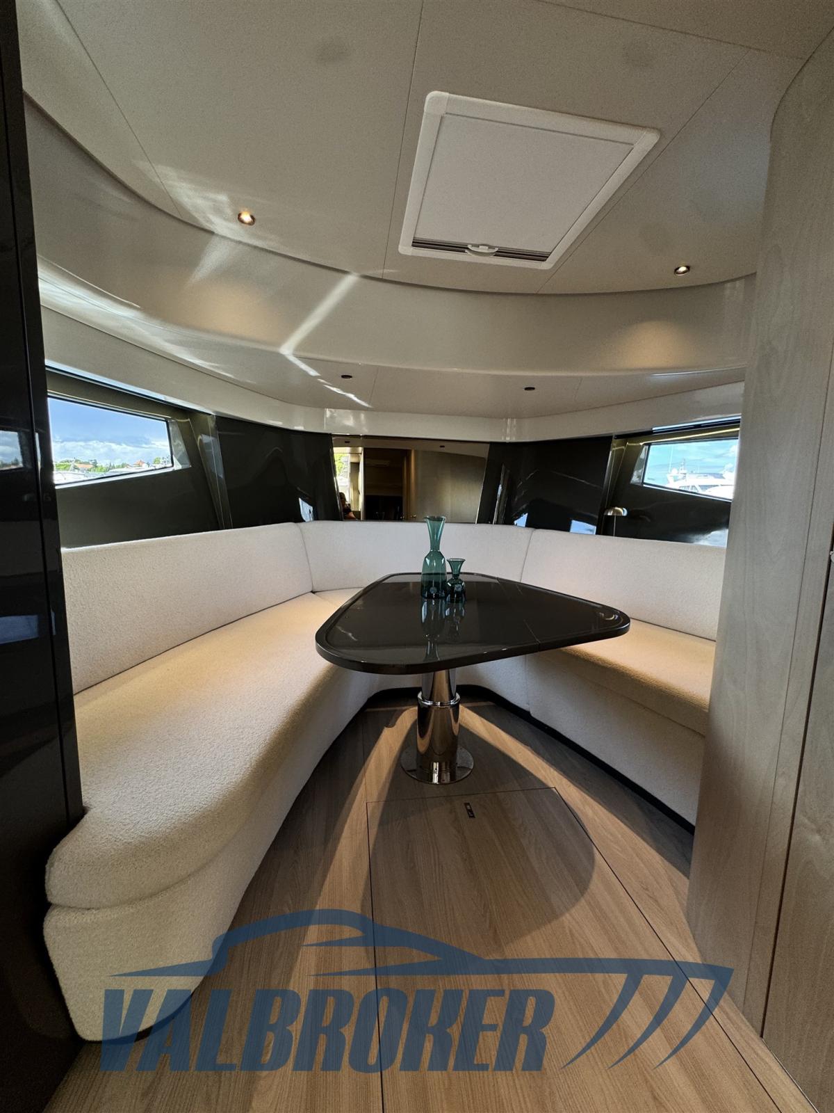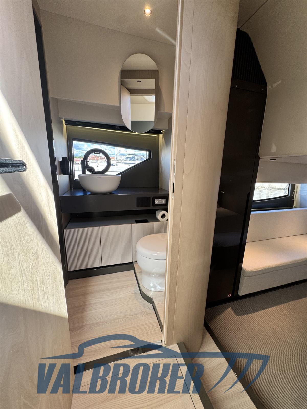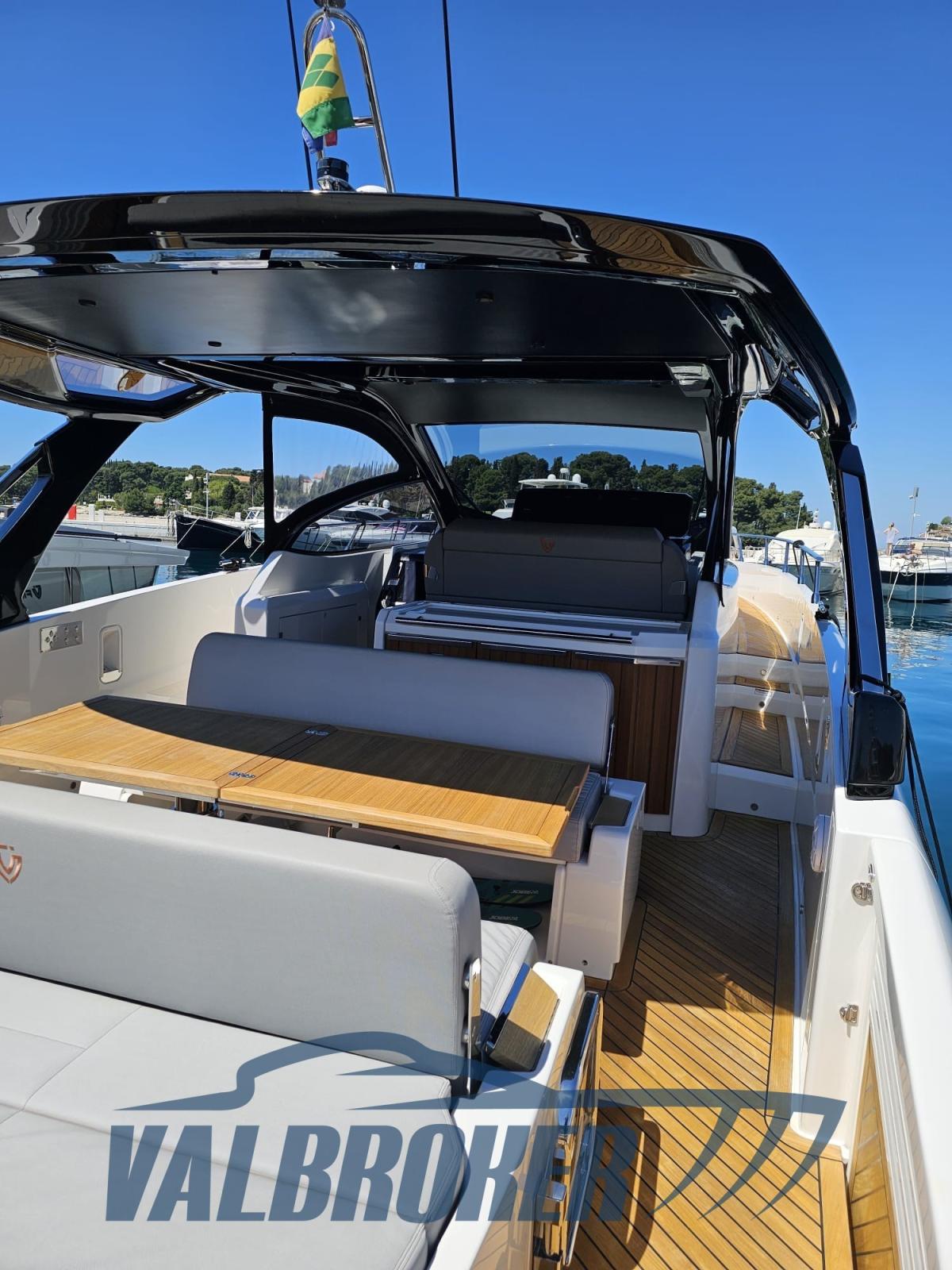 Des lignes captivantes combinées à un grand pare-brise et une excellente circulation de l’air dans le cockpit grâce au toit rigide avec ouverture en lattes. Il offre une grande cabine arrière pleine poutre pour le propriétaire, une élégante salle à manger à l’avant, convertible électriquement en une véritable seconde cabine et deux salles de bains. Les intérieurs sont modernes avec des matériaux luxueux et raffinés. À l’extérieur, l’élégance du design s’accorde parfaitement avec l’esprit sportif de ce nouveau modèle 100 % Made in Italy.