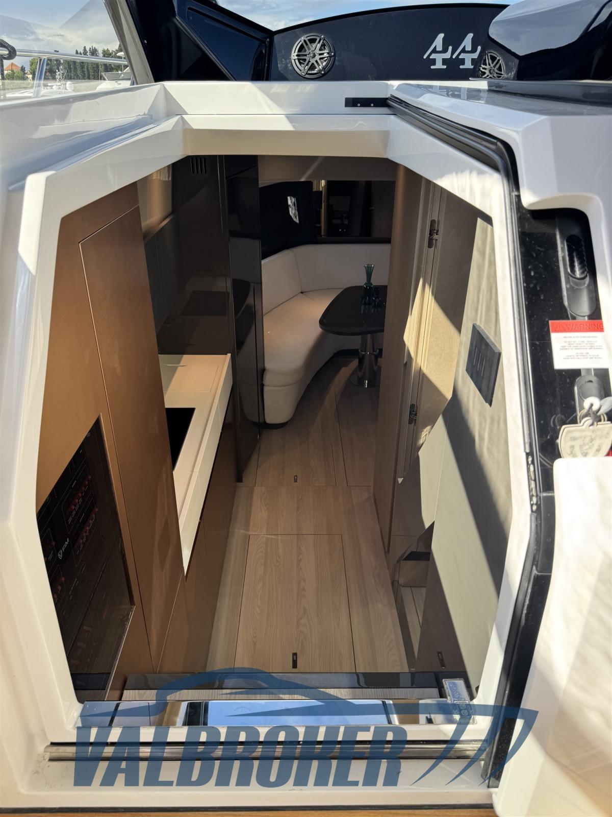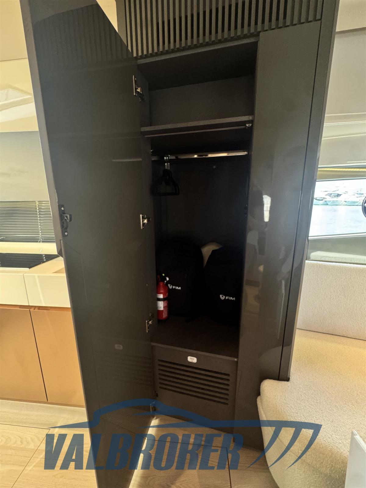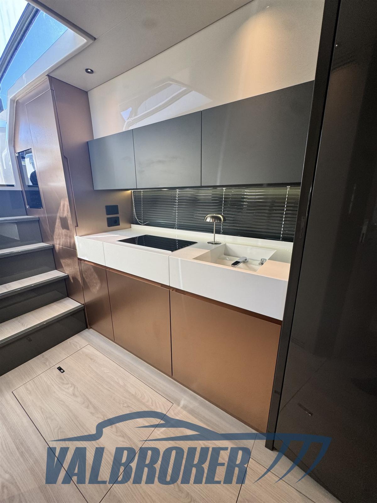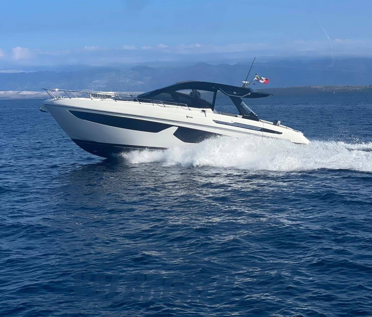Des lignes captivantes combinées à un grand pare-brise et une excellente circulation de l’air dans le cockpit grâce au toit rigide avec ouverture en lattes. Il offre une grande cabine arrière pleine poutre pour le propriétaire, une élégante salle à manger à l’avant, convertible électriquement en une véritable seconde cabine et deux salles de bains. Les intérieurs sont modernes avec des matériaux luxueux et raffinés. À l’extérieur, l’élégance du design s’accorde parfaitement avec l’esprit sportif de ce nouveau modèle 100 % Made in Italy.