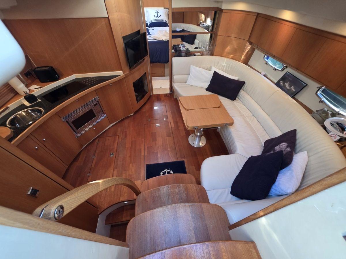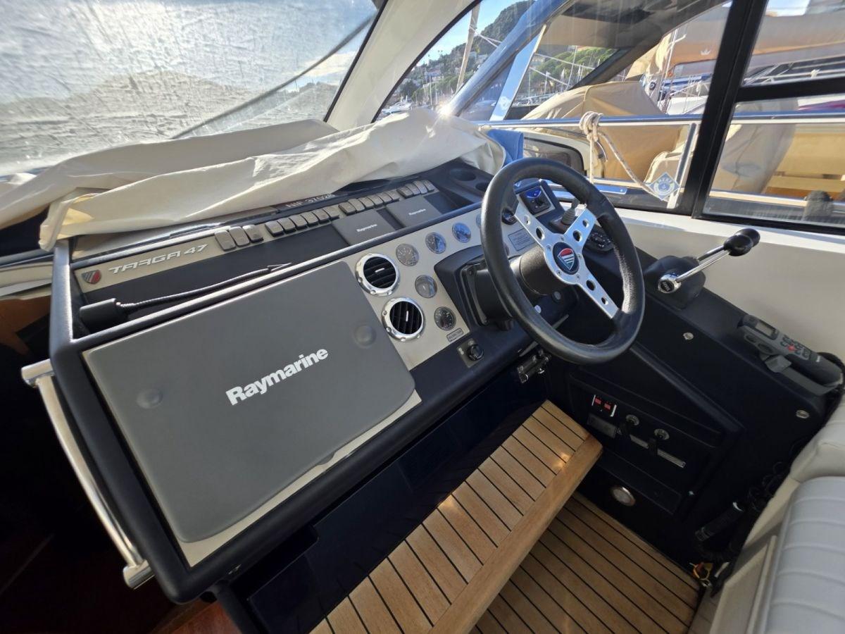 Entièrement équipé : climatisation, générateur, onglet de trim, pilote automatique, GPS/sondeur de profondeur, propulseur d’étrave, cockpit en teck, auvent de camping,