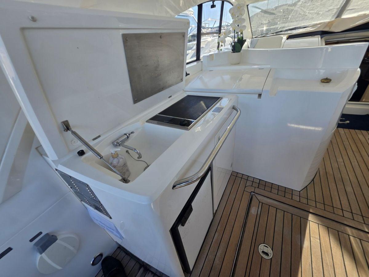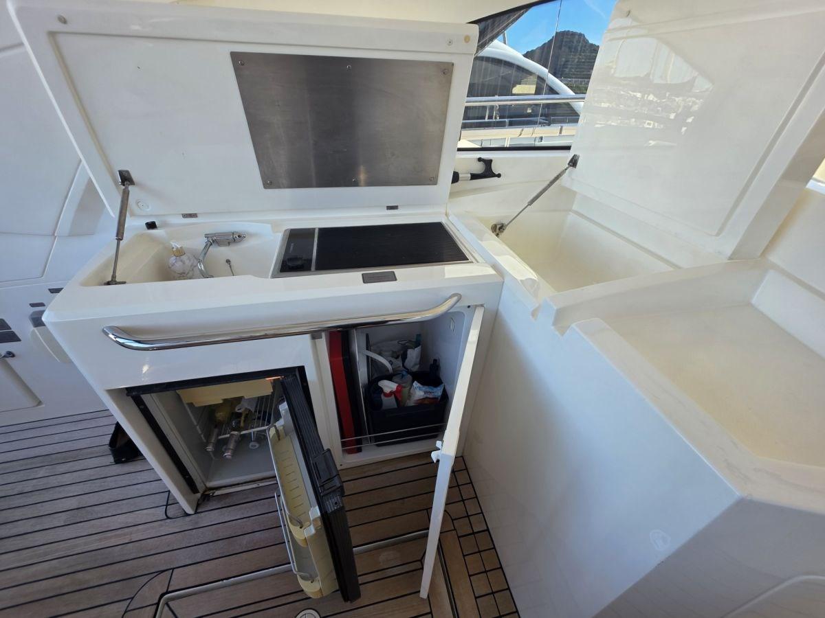 Alarme moteur, Douche de cockpit, Flaps hydrauliques, Hard top, Éclairage de courtoisie, Passerelle, Cockpit en teck, Prise de quai, Connexion eau sous pression à quai, Guindeau électrique, Echelle de bain.