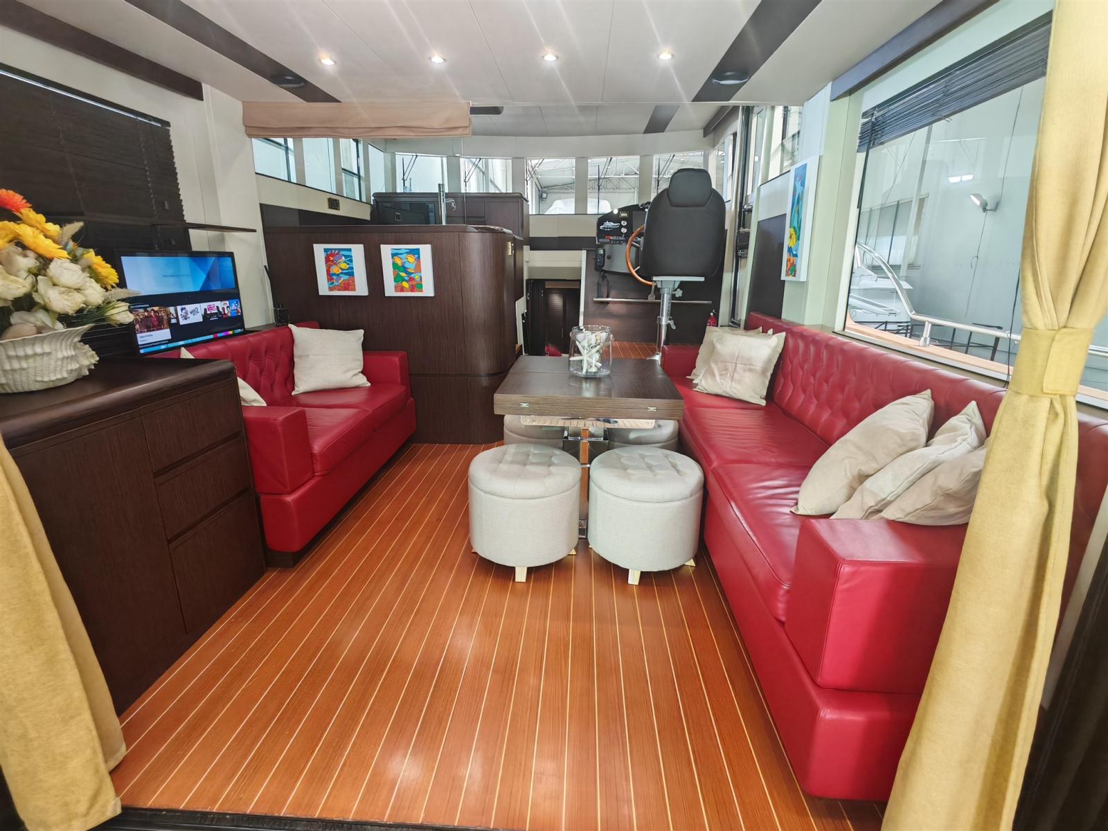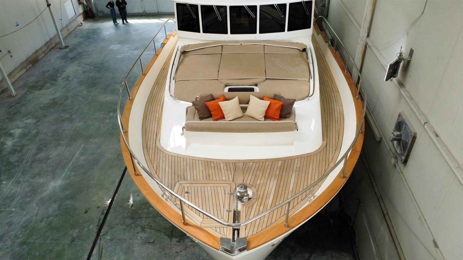 Possibilité d’échange partiel - plate-forme arrière rabattable, ordinateur de bord, VRT T-top sur le flybridge, plancher de flybridge en teck, etc.
