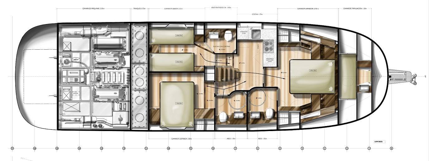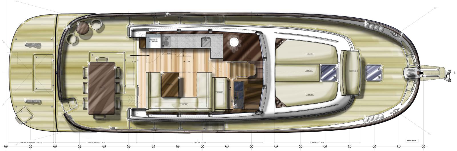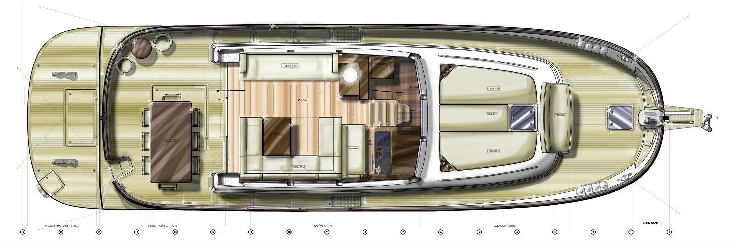 Bateau NEUF en version Hard Top. Flybridge en option. Prix Hors Taxes départ chantier sur l'île de Minorque. Choix d'agencement, d'options et de matériaux à définir. Nous contacter pour le détail des équipements, la liste des options ou pour une cotation.