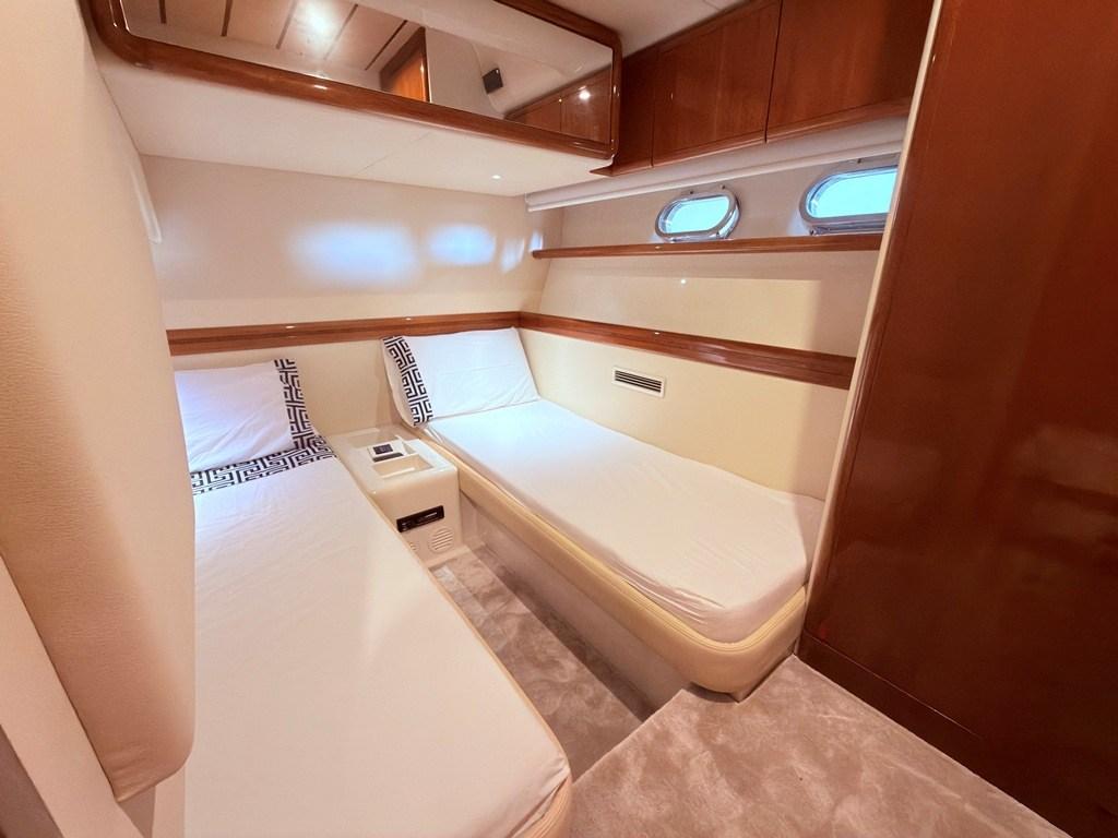 Alarme moteur, Alarme de pompe de cale, Ancre (Catena in acciaio), Eau sous pression, Batteries (2024), Câble d’alimentation à quai, Propulseur de poupe (2025 Max Power), Propulseur d'étrave (2025 Max Power), Flaps hydrauliques, Extincteur(s) fixe(s), Indicateurs de flaps, Lavage de chaine, 2 Lavabo dans le cockpit (Acqua dolce e salata), Éclairage de courtoisie, Spots sous-marins, Passerelle (idraulica 350 Kg), Plateforme arrière (di poppa in Vetroresina), Pompe à Eau de Mer, Cockpit en teck, Prise de quai, Connexion eau sous pression à quai, Onduleur, Répétiteur électronique (Display maxi Garmin), Rollbar, Guindeau électrique, Echelle de bain, Selles pour Annexe, 2 Winch, 2 Winch électrique arrière, Winch électrique avant.