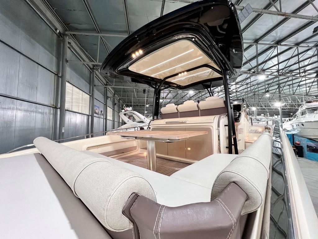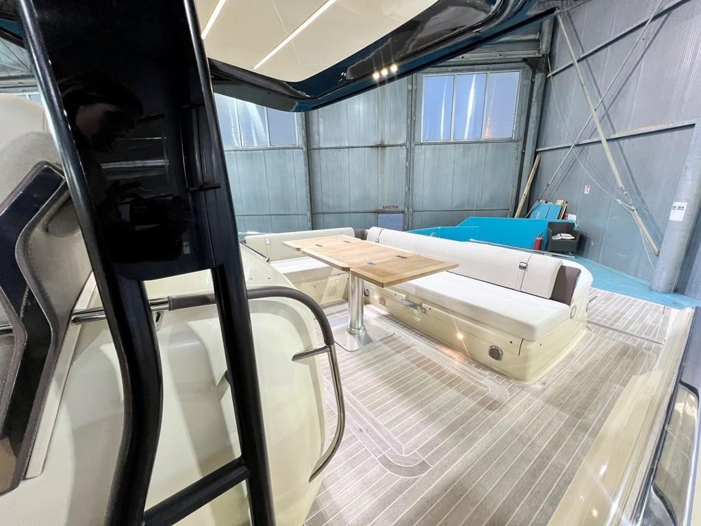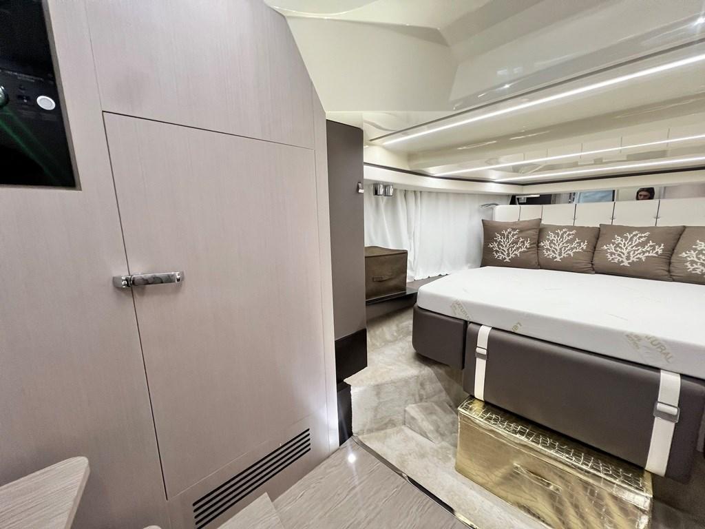 Alarme moteur, Eau sous pression, Couleur spéciale (fiancate (Wild Bronze)), Douche de cockpit, Flaps électriques, Hard top (in carbonio), Extincteur(s) fixe(s), Éclairage de courtoisie, Prise de quai, Connexion eau sous pression à quai, Onduleur, Guindeau électrique, Echelle de bain, table de cockpit, Corne.