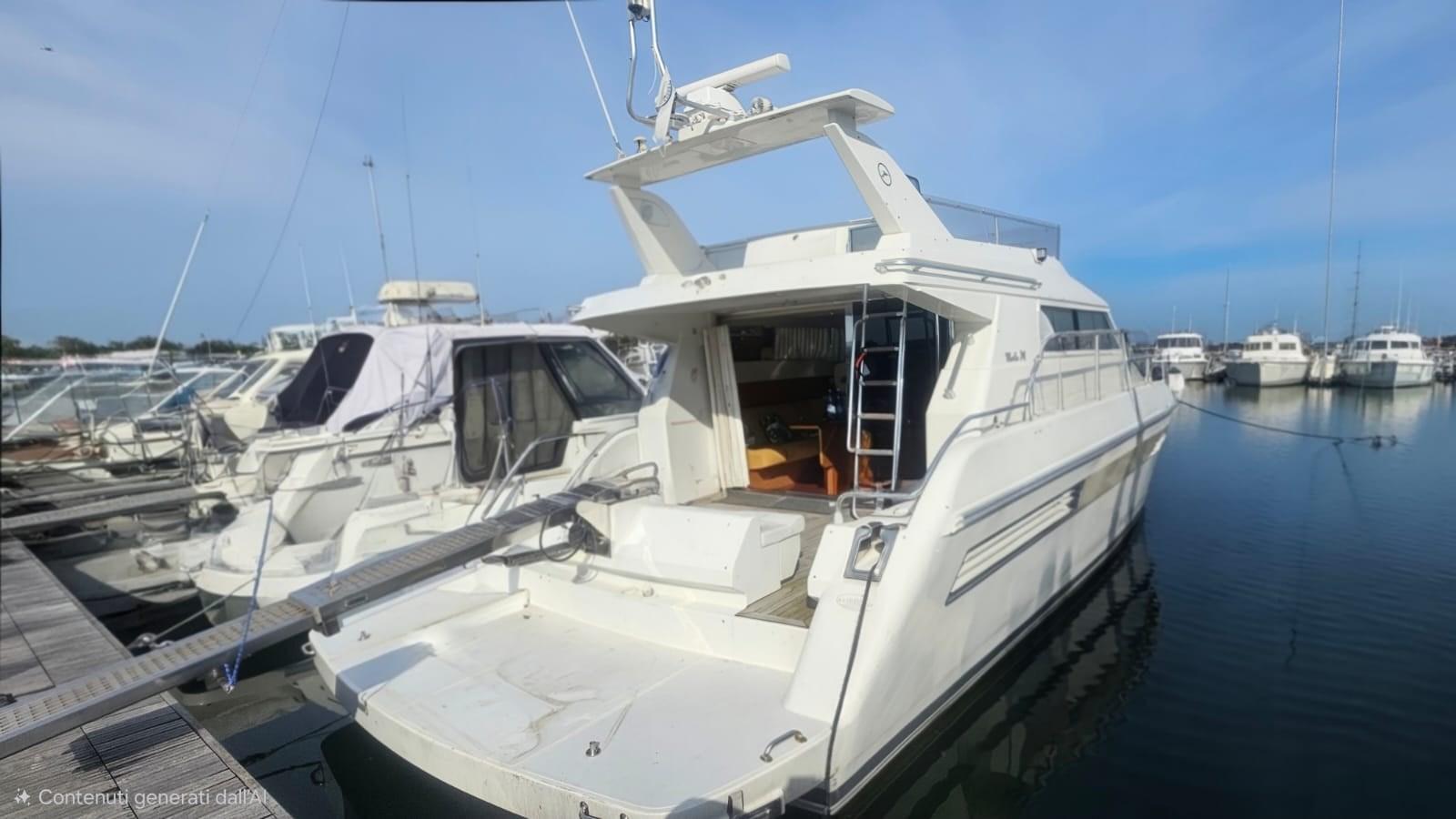 Ouverture du compartiment moteur électrique, Eau sous pression, 4 Batteries (Nuove 2022), Chargeur de batterie (Nuovo 2022), Couleur spéciale (Facia gria in fiancata), Douche de cockpit, Double barre à roue, Propulseur de poupe (2020), Flaps hydrauliques, Lavage de chaine, Éclairage de courtoisie, Passerelle (Idraulica), Plateforme arrière (Allungata), Pompe de cale automatique, Cockpit en teck, Prise de quai, Connexion eau sous pression à quai, Onduleur, Rollbar (sul fly), Guindeau électrique, Echelle de bain, table de cockpit, Corne.