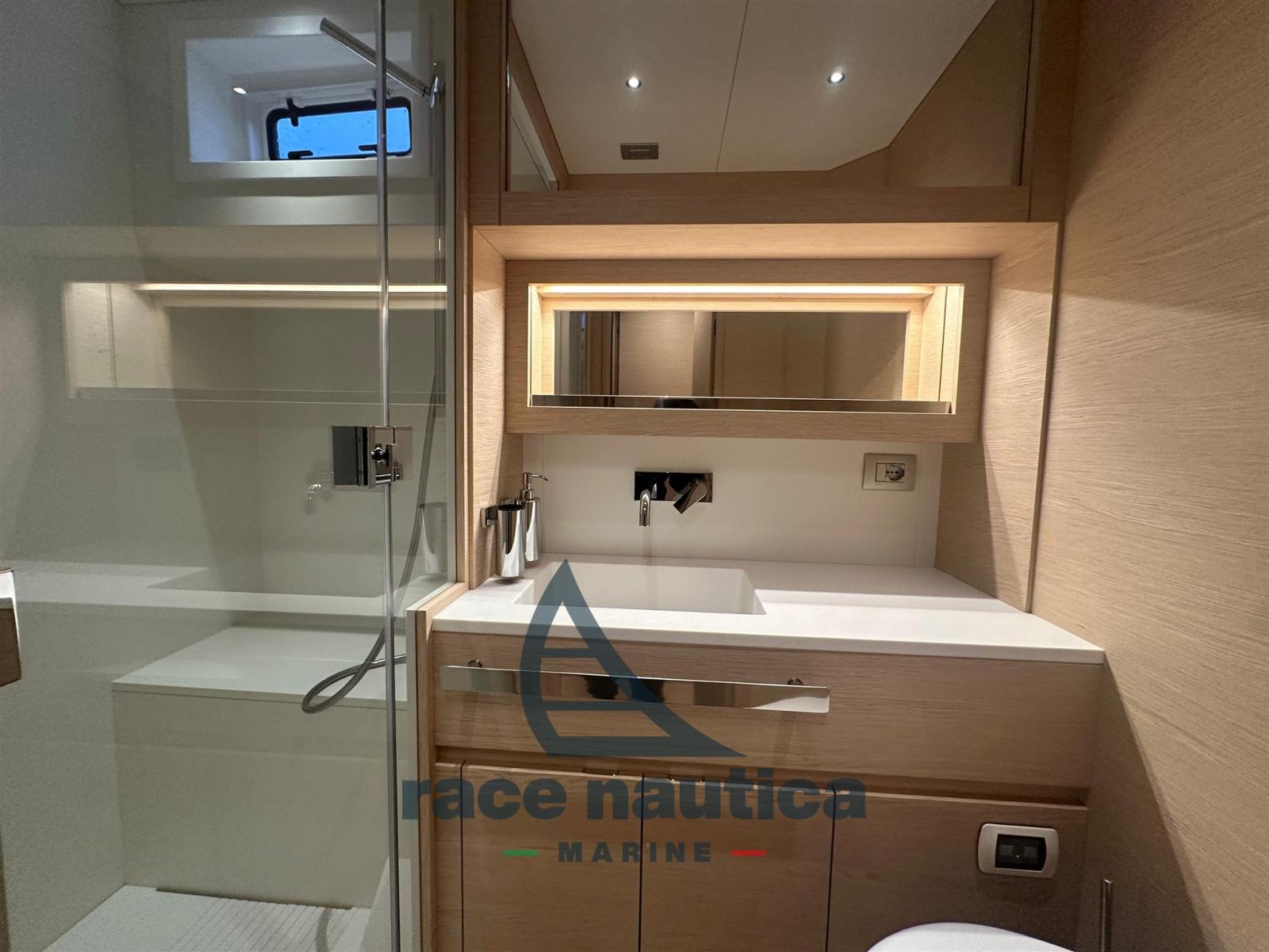 Moteurs Volvo Penta IPS 800, 100 heures de service, système de positionnement dynamique Volvo, stabilisateur Seakeeper 6, propulseur à la proue, coque - superstructure - pont - pont arrière peint avec des matériaux haute température post-durcissement peint, pont en teck naturel finition noire, supplément pour finition grise, plateforme arrière partiellement allongée avec système de levage, table de cockpit pliante avec deux pieds électriques, coussins supplémentaires et dossiers inclinables, système de lancement du tender avec rouleaux et treuil électrique, deux bornes rétractables pour le tender sur la plateforme arrière, mobilier de cockpit pour le rangement et la détente, supplément de design en losange sur la sellerie extérieure, trappe ouvrante à la proue, hublot d’ouverture dans la coque arrière de la cabine, ensemble fenêtre ouvrante, toit coulissant sur le pont principal, climatisation réversible chaud/froid, climatisation pour la cabine de l’équipage, équipements de cabine d’équipage, machine à café et vaisselle Solaris Power, ancre en acier inoxydable de 35 kg, table pliante en salle à manger avec coussins électriques pour pieds et canapés, comptoir de chaîne numérique, projecteur électrique, kit d’amarrage, pack TV, TV LCD dans la salle à manger avec mécanisme de relevage, système sonore, batterie de service supplémentaire de 180 Ah, onduleur 2500W, veilleuses extérieures sur la passerelle, deux prises étanches de 220V sur le côté, deux écrans Volvo 16" plus un troisième, radar GMG Fantom 40W, Garmin AIS - 800RX/Tx, générateur de 12 kW, auvent avant avec poteaux rétractables, ensemble de couverture, auvent électrique intégré dans la maison de pont, pare-soleil pour le pare-brise avant et les fenêtres de la maison de pont, échelle personnalisée, repose-pieds de poste de barre, kit de rampe, linge de lit, rampes d’escalier internes.