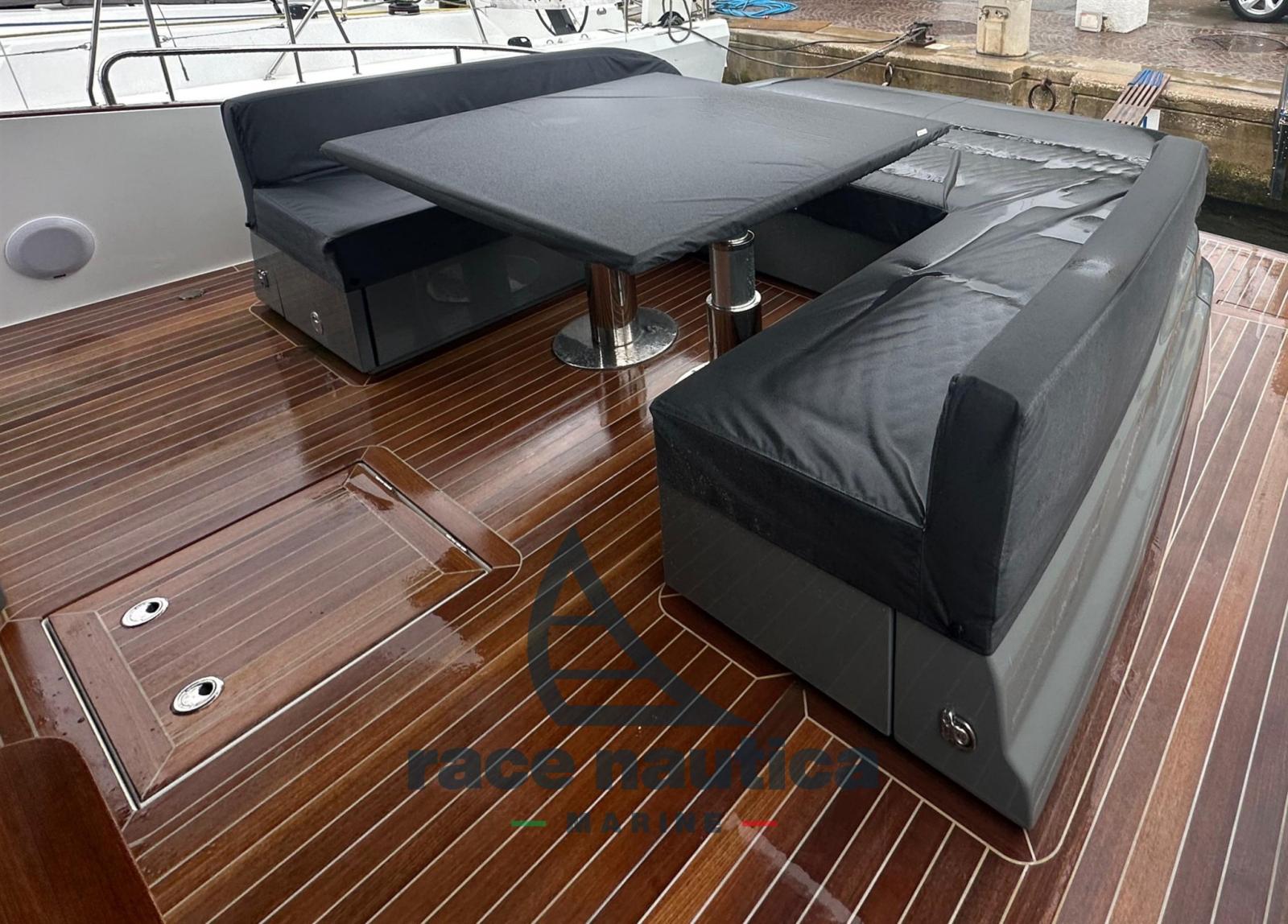 Moteurs Volvo Penta IPS 800, 100 heures de moteur, système de positionnement dynamique Volvo, stabilisateur Seakeeper 6, propulseur d’étrave, coque - superstructure - pont - pont - pont arrière peint avec des matériaux haute température et post-durcissement peint, teck de pont en bois naturel comento noir, supplément pour le gris commentaire, plateforme de nage partiellement surdimensionnée à la poupe avec système de montée et de descente, table pliante dans le cockpit avec deux pieds électriques, coussins supplémentaires et dossiers inclinables, système de lancement à tender avec rouleaux et treuil électrique, deux bornes rétractables pour tender sur la plateforme arrière, mobilier de cockpit pour stockage et zone de détente, supplément en losange sur la sellerie extérieure, ouverture du hublot à la proue, ouverture du hublot dans la coque arrière, fenêtres ouvrantes, toit coulissant du pont principal, climatisation réversible chaud/froide, climatisation pour la cabine d’équipage, équipements de cabine d’équipage, machine à café et ensemble de vaisselle Solaris Power, ancre en acier inoxydable de 35 kg, table pliante dans la salle à manger avec pieds et coussins électriques pour le canapé, comptoir de chaîne numérique, phare électrique, kit d’amarrage, pack TV, TV LCD dans la salle à manger avec hauts et bas, système audio, batterie de service supplémentaire de 180 ah, onduleur de 2500 W, Feux de nuit extérieurs pour passerelle, 2 prises étanches de 220 V sur les côtés, deux écrans Volvo 16" plus un troisième, radar GMG Fantom 40 W, Garmin AIS - 800RX/Tx, générateur 12 kW, auvent avant avec poteaux amovibles, ensemble de protection, auvent électrique intégré dans la maison de pont, pare-soleil pour pare-brise avant et vitre de la maison de pont, échelle de camouflage, repose-pieds de timonerie, kit de rampe, Linge de lit, rampes, escaliers intérieurs.