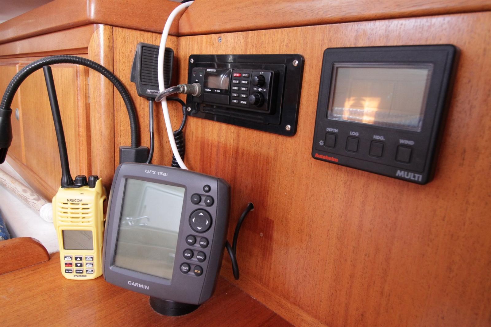 AIS (Classe B (Emetteur, recepteur)), Loch (AUTOHELM ST40), DSC VHF, GPS (GARMIN 158i), Pilote automatique (neuf de 2025 Raymarine ST2000), Radio VHF (portable), Sondeur (AUTOHELM ST40).