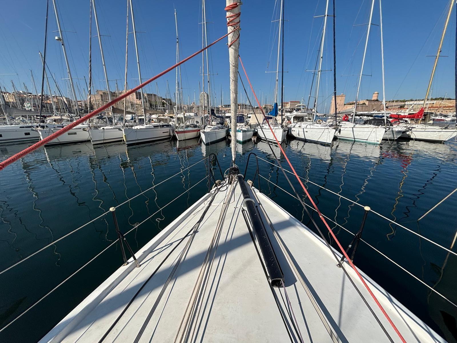 Deux barres franches pour un contrôle précis en navigation. Électronique complet incluant radar, idéal pour la navigation hauturière. Gréement performant avec mât carbone, bôme aluminium et 7 voiles de course. Excellente autonomie énergétique : hydrogénérateur Watt&Sea 600W, panneaux solaires, convertisseur, dessalinisateur.