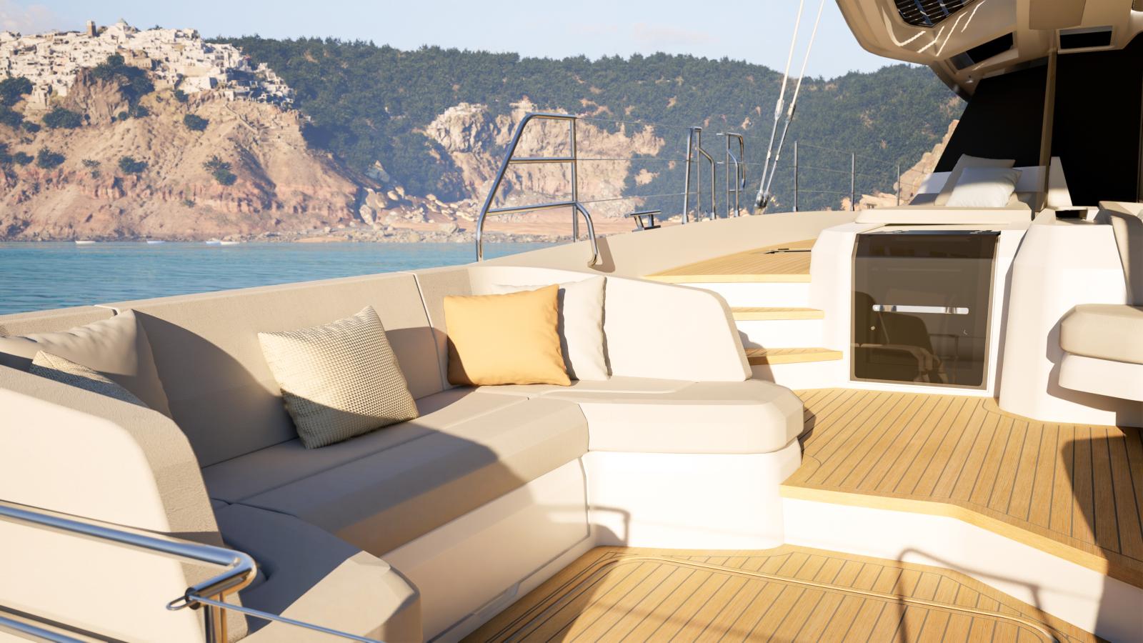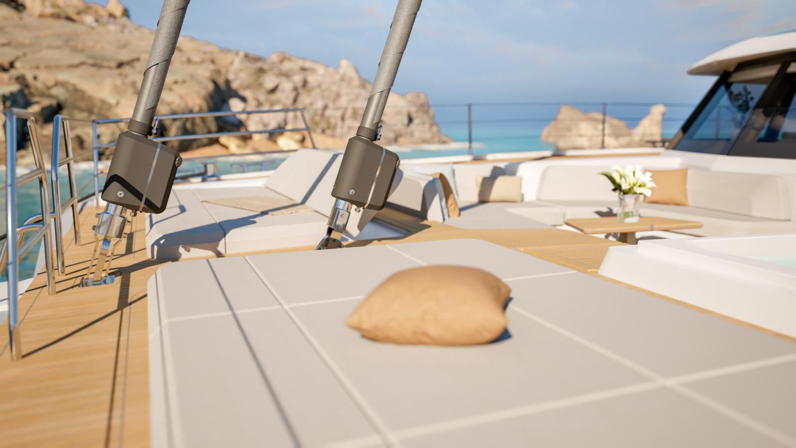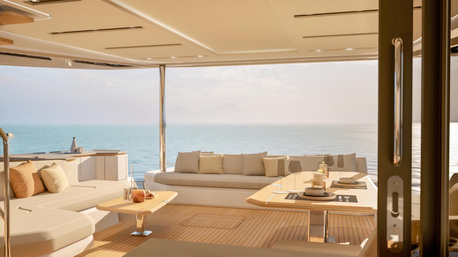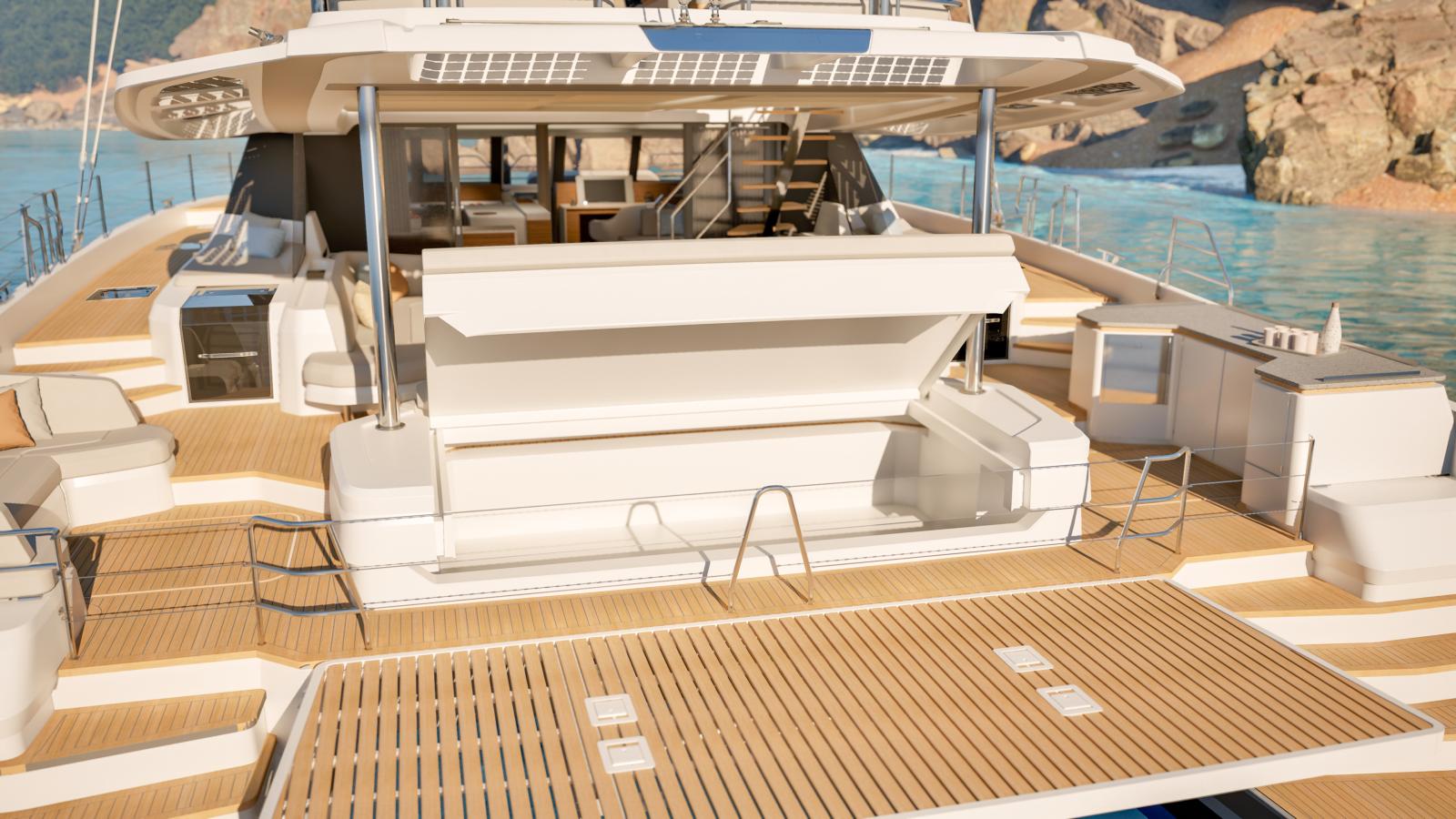 Long de 22 mètres, avec 226 m² d’espaces habitables, le FPY 70S se vit comme une résidence en mouvement, ouverte sur l’horizon. Jusqu’à 12 hôtes et 5 membres d’équipage y trouvent leur espace, leur respiration. Salon sur terrasse arrière de 51 m², flybridge panoramique de 31 m², salon sur terrasse avant équipé d’un spa de 26 m², suite Maestro de 25 m²… Chaque volume favorise le mouvement naturel, l’échange ou le retour l’intimité. A l’arrière, le beach club articule détente et plaisir actif : solarium, plage de bain hydraulique, vaste rangement pour les loisirs nautiques. L’océan devient votre terrain de jeu personnel.