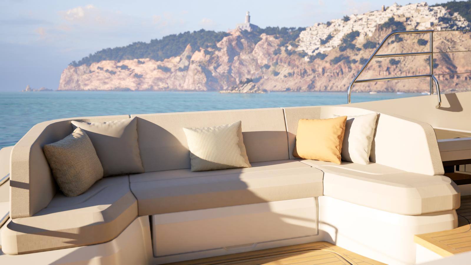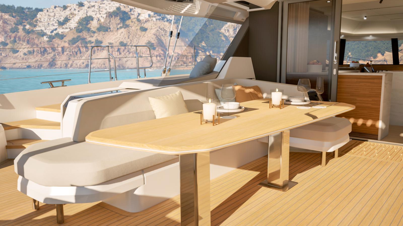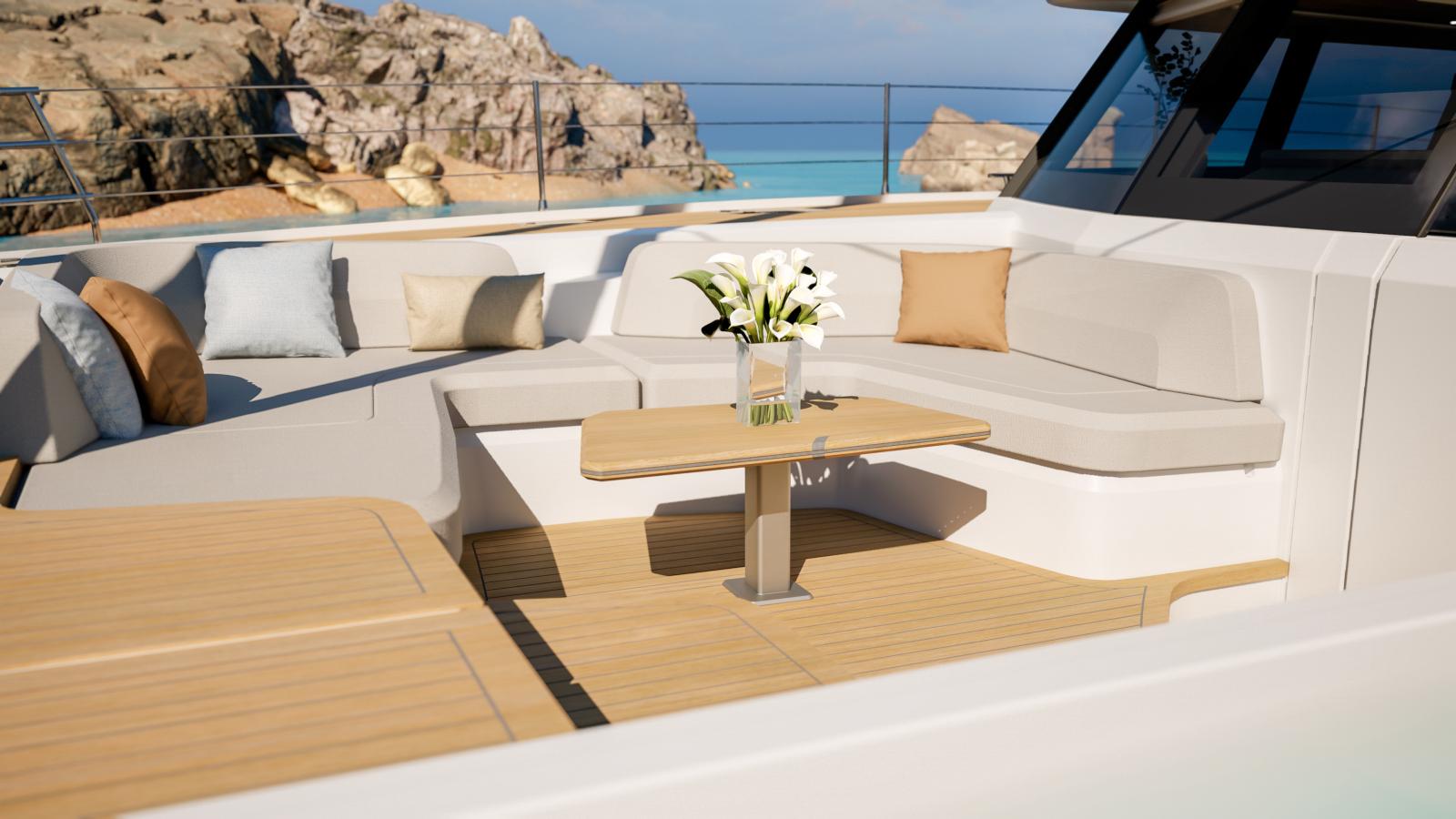 Long de 22 mètres, avec 226 m² d’espaces habitables, le FPY 70S se vit comme une résidence en mouvement, ouverte sur l’horizon. Jusqu’à 12 hôtes et 5 membres d’équipage y trouvent leur espace, leur respiration. Salon sur terrasse arrière de 51 m², flybridge panoramique de 31 m², salon sur terrasse avant équipé d’un spa de 26 m², suite Maestro de 25 m²… Chaque volume favorise le mouvement naturel, l’échange ou le retour l’intimité. A l’arrière, le beach club articule détente et plaisir actif : solarium, plage de bain hydraulique, vaste rangement pour les loisirs nautiques. L’océan devient votre terrain de jeu personnel.