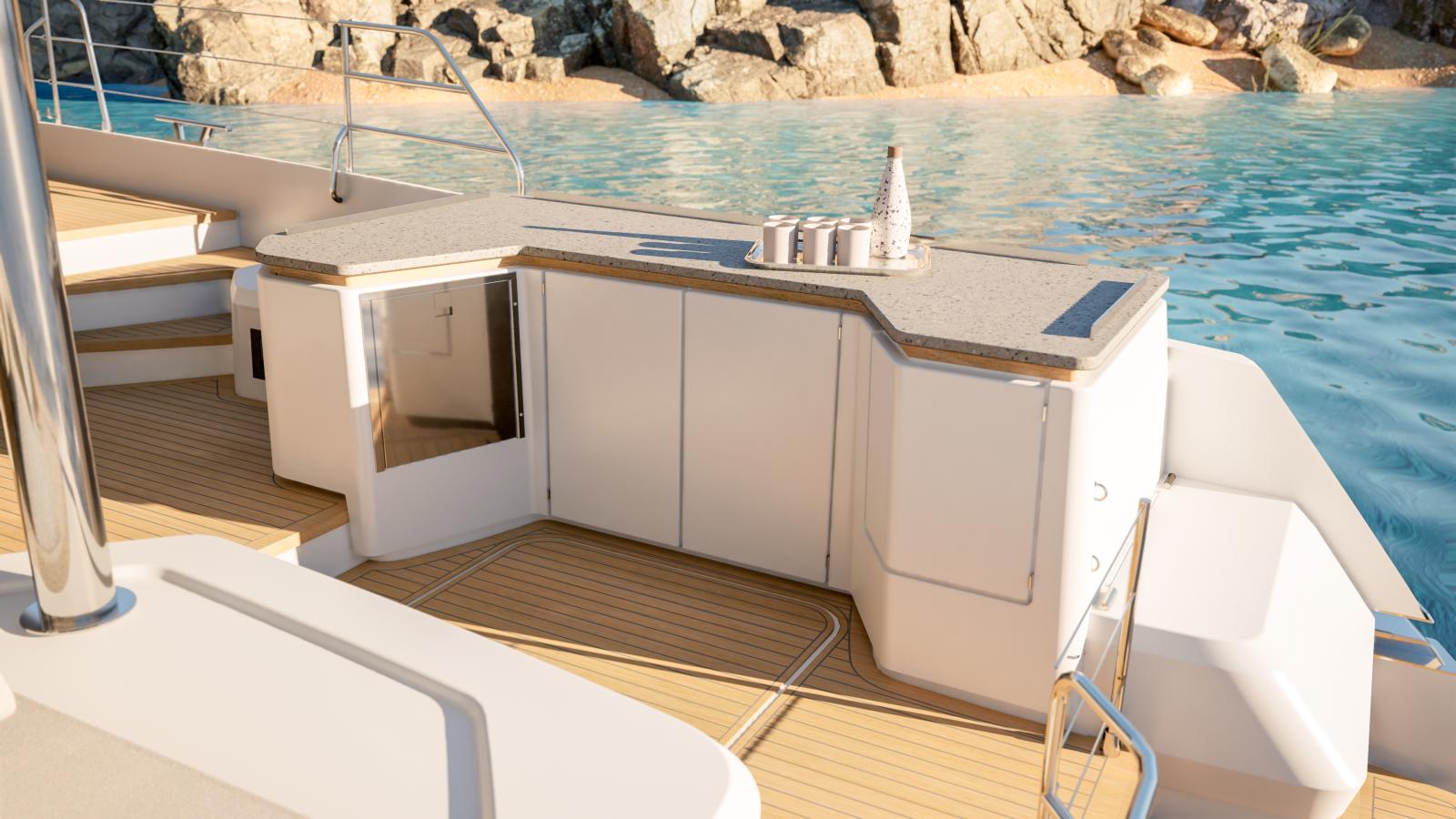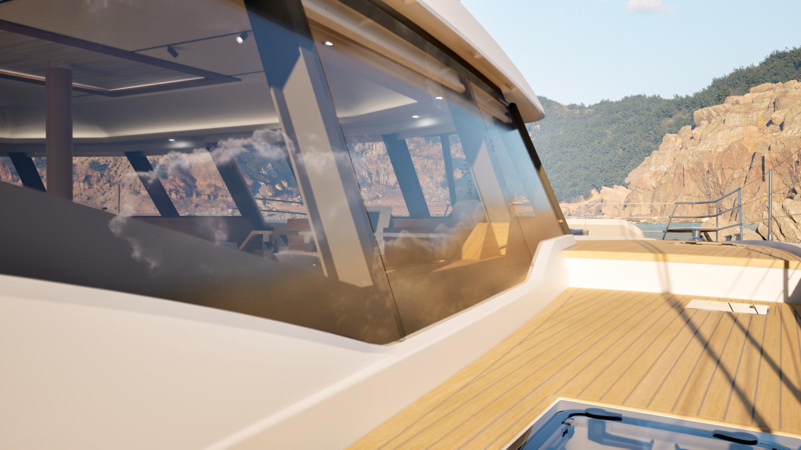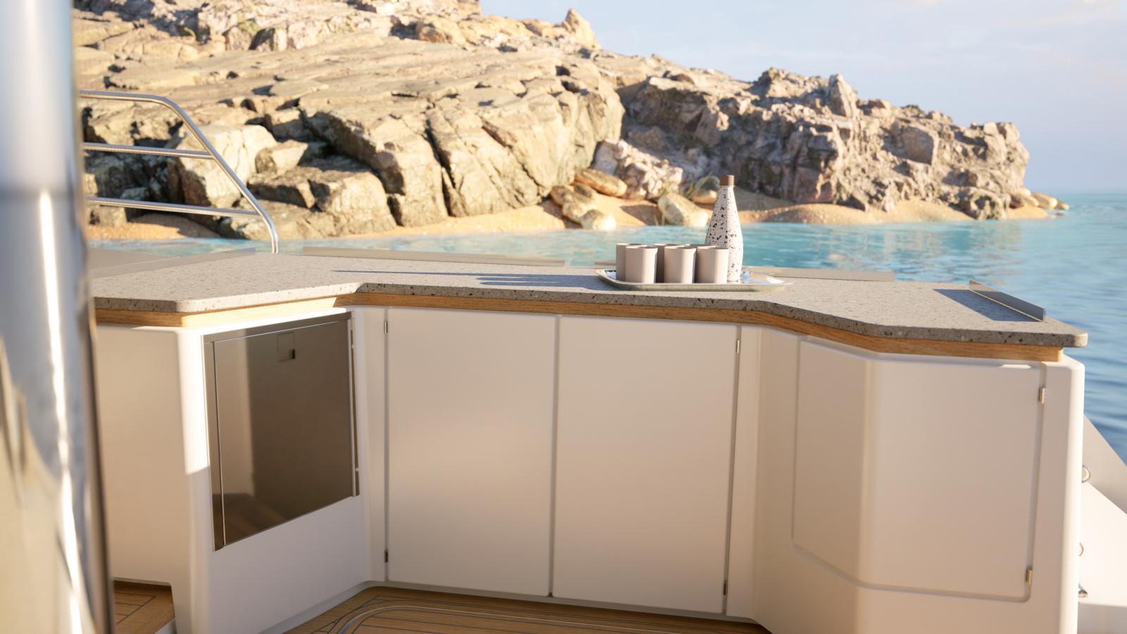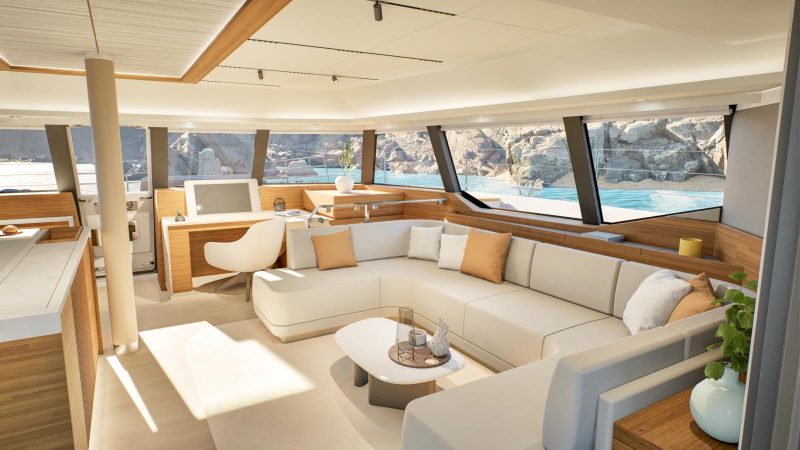 Long de 22 mètres, avec 226 m² d’espaces habitables, le FPY 70S se vit comme une résidence en mouvement, ouverte sur l’horizon. Jusqu’à 12 hôtes et 5 membres d’équipage y trouvent leur espace, leur respiration. Salon sur terrasse arrière de 51 m², flybridge panoramique de 31 m², salon sur terrasse avant équipé d’un spa de 26 m², suite Maestro de 25 m²… Chaque volume favorise le mouvement naturel, l’échange ou le retour l’intimité. A l’arrière, le beach club articule détente et plaisir actif : solarium, plage de bain hydraulique, vaste rangement pour les loisirs nautiques. L’océan devient votre terrain de jeu personnel.