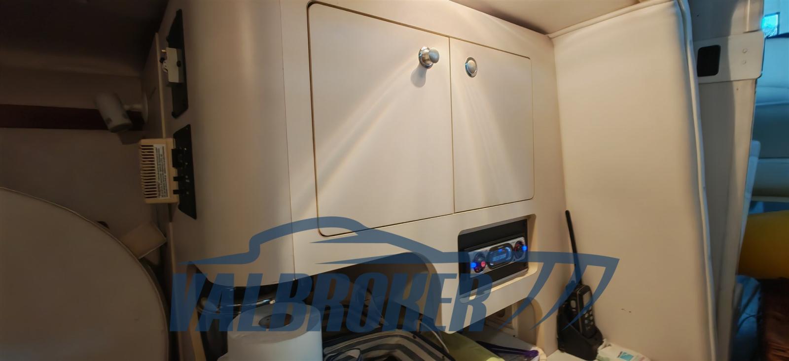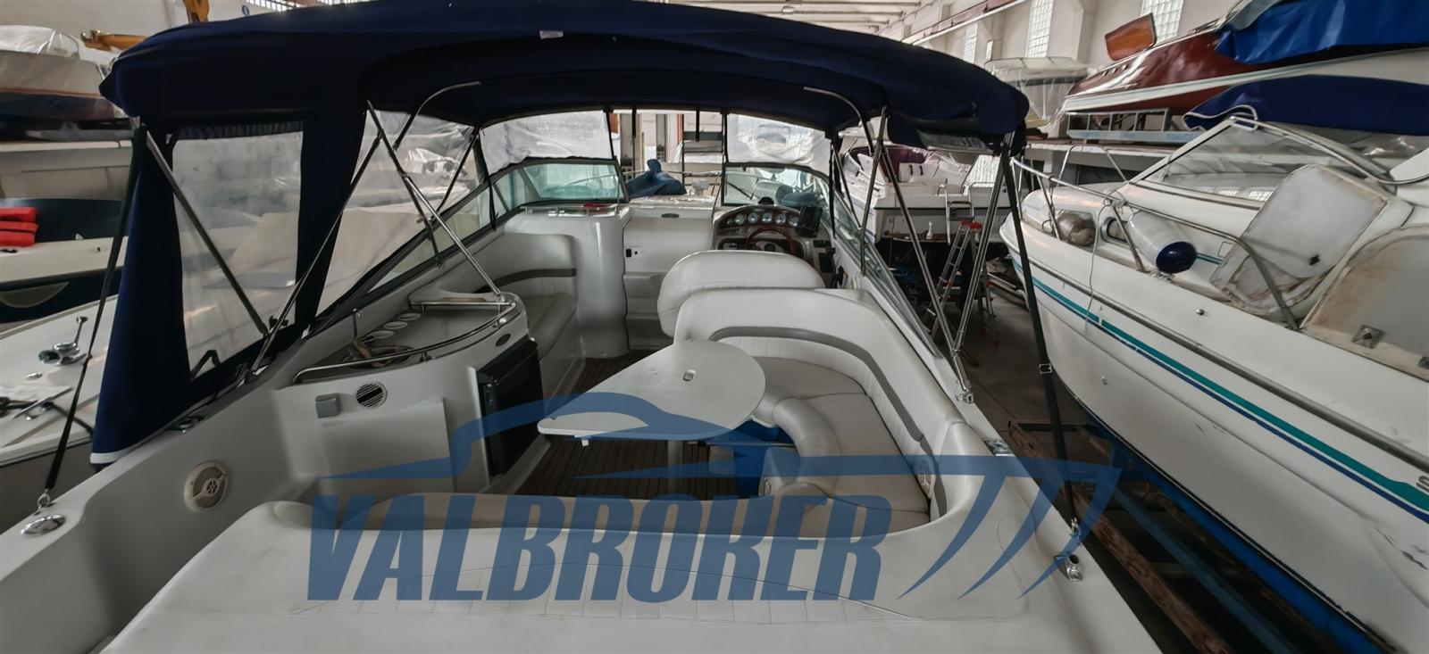 Quatre Winns 285 avec un grand cockpit qui se transforme en pont solaire. Sous le pont, la cabine comprend une salle à manger qui se transforme en couchette en V et une salle de bain séparée. Seul le lac est utilisé.