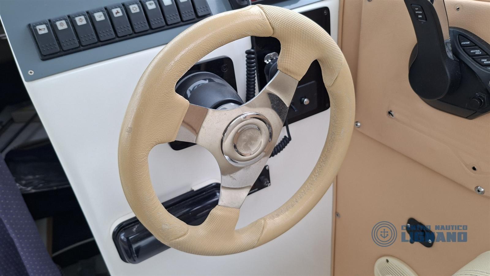 Alarme moteur, Ancre (elettrica Garmin e di scorta), Eau sous pression, 2 Batteries, Douche de cockpit, Phare de poursuite, Hard top, Porte latérale, Prise de quai, Connexion eau sous pression à quai, Guindeau électrique, Echelle de bain, table de cockpit, Corne.