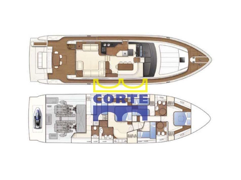 Alarme gaz, Alarme moteur, Alarme de pompe de cale, Eau sous pression, Système de vidange, Passavant en teck, Douche de cockpit, Double barre à roue, Phare de poursuite, 2 Flaps hydrauliques, Grue de flybridge, Extincteur(s) fixe(s), Lavabo dans le cockpit, Éclairage de courtoisie, Passerelle (elettroidraulica), Plateforme arrière (di poppa apribile elettricamente con gavone), Pompe de cale automatique, Pompe de cale manuelle, Porte latérale, Porte latérale, Cockpit en teck, Prise de quai, Rollbar, 2 Guindeau électrique, Echelle de bain, table de cockpit (in legno), Corne, 2 Winch électrique arrière, 2 Winch électrique avant.
