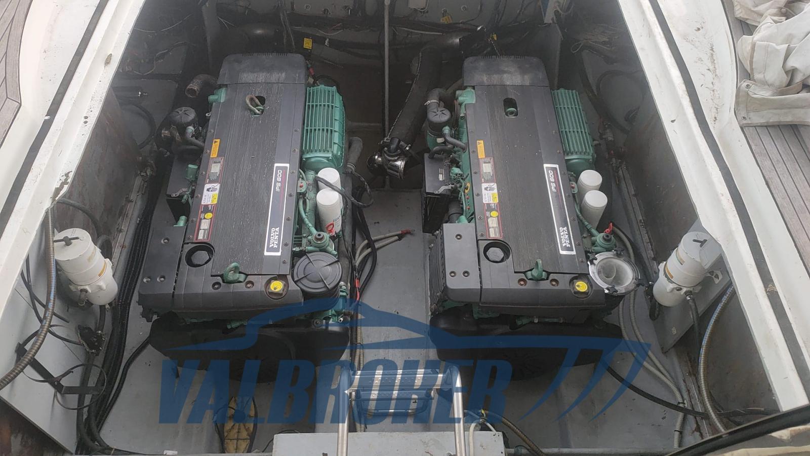 Moteurs 2x435 CV Volvo Penta D6 - 435, dernière révision effectuée à l’été 2023. 2016 : nouvel embrayage IPS. 2022/2023 : nettoyage des réservoirs de gasoil, ajout de préfiltres supplémentaires, calibrage de la direction et du joystick, moyeu de timonerie.